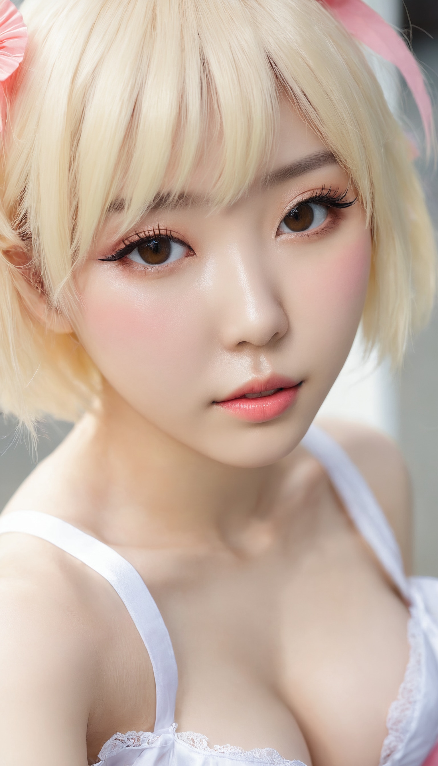 {"3": {"inputs": {"seed": 534071288761459, "steps": 64, "cfg": 5.28, "sampler_name": "dpmpp_2m", "scheduler": "karras", "denoise": 1.0, "model": ["27", 0], "positive": ["6", 0], "negative": ["7", 0], "latent_image": ["5", 0]}, "class_type": "KSampler"}, "4": {"inputs": {"ckpt_name": "juggernautxl.safetensors"}, "class_type": "CheckpointLoaderSimple"}, "5": {"inputs": {"width": 768, "height": 1344, "batch_size": 1}, "class_type": "EmptyLatentImage"}, "6": {"inputs": {"text": "25 year old girl, (korean:1.07), (temptress:1.05), (sexy lips:1.13), (blush:0.96), (slim:0.99), (cute:1.05), (detailed face:1.09), (idol:0.99), (beautiful eyes:0.97), (seductive facial expression:1.00), (double eyelids:1.00), (eyelashes:1.05), (seductive pose:1.05), (pale skin:1.12), (in a seductive pose:1.13), (large perky breasts:1.02), (cleavage:1.09), (thigh gap:0.97), (in a cosplay:1.14) at comiket posing for camera, (film:1.04), (detailed skin:1.08), (skin fuzz:1.01), (RAW:1.02), (textured skin:1.05), (portra:1.02), (natural looking skin:1.06), (soft lighting:1.06), (candid cinema:1.07)", "clip": ["27", 1]}, "class_type": "CLIPTextEncode"}, "7": {"inputs": {"text": "(low resolution:1.09), (bad hands:1.14), (watermark:1.09), (twisted:1.12), (open mouth:1.13), (distorted:1.09), (worst quality:1.12)", "clip": ["27", 1]}, "class_type": "CLIPTextEncode"}, "8": {"inputs": {"samples": ["3", 0], "vae": ["4", 2]}, "class_type": "VAEDecode"}, "25": {"inputs": {"lora_name": "nudify_xl.safetensors", "strength_model": 0.28, "strength_clip": 0.11, "model": ["4", 0], "clip": ["4", 1]}, "class_type": "LoraLoader"}, "26": {"inputs": {"lora_name": "shirtlift_SDXL_v2.safetensors", "strength_model": 0.14, "strength_clip": 0.0, "model": ["25", 0], "clip": ["25", 1]}, "class_type": "LoraLoader"}, "27": {"inputs": {"lora_name": "PerfectEyesXL.safetensors", "strength_model": 0.04, "strength_clip": 0.15, "model": ["26", 0], "clip": ["26", 1]}, "class_type": "LoraLoader"}, "30": {"inputs": {"model_name": "4x_NMKD-Superscale-SP_178000_G.pth"}, "class_type": "UpscaleModelLoader"}, "31": {"inputs": {"upscale_model": ["30", 0], "image": ["8", 0]}, "class_type": "ImageUpscaleWithModel"}, "32": {"inputs": {"upscale_method": "lanczos", "scale_by": 0.5, "image": ["31", 0]}, "class_type": "ImageScaleBy"}, "33": {"inputs": {"pixels": ["32", 0], "vae": ["4", 2]}, "class_type": "VAEEncode"}, "34": {"inputs": {"seed": 534071288761459, "steps": 64, "cfg": 5.28, "sampler_name": "dpmpp_2m", "scheduler": "karras", "denoise": 0.3, "model": ["27", 0], "positive": ["6", 0], "negative": ["7", 0], "latent_image": ["33", 0]}, "class_type": "KSampler"}, "36": {"inputs": {"samples": ["34", 0], "vae": ["4", 2]}, "class_type": "VAEDecode"}, "39": {"inputs": {"filename_prefix": "comfyapi-1718241970178", "images": ["36", 0]}, "class_type": "SaveImage"}}