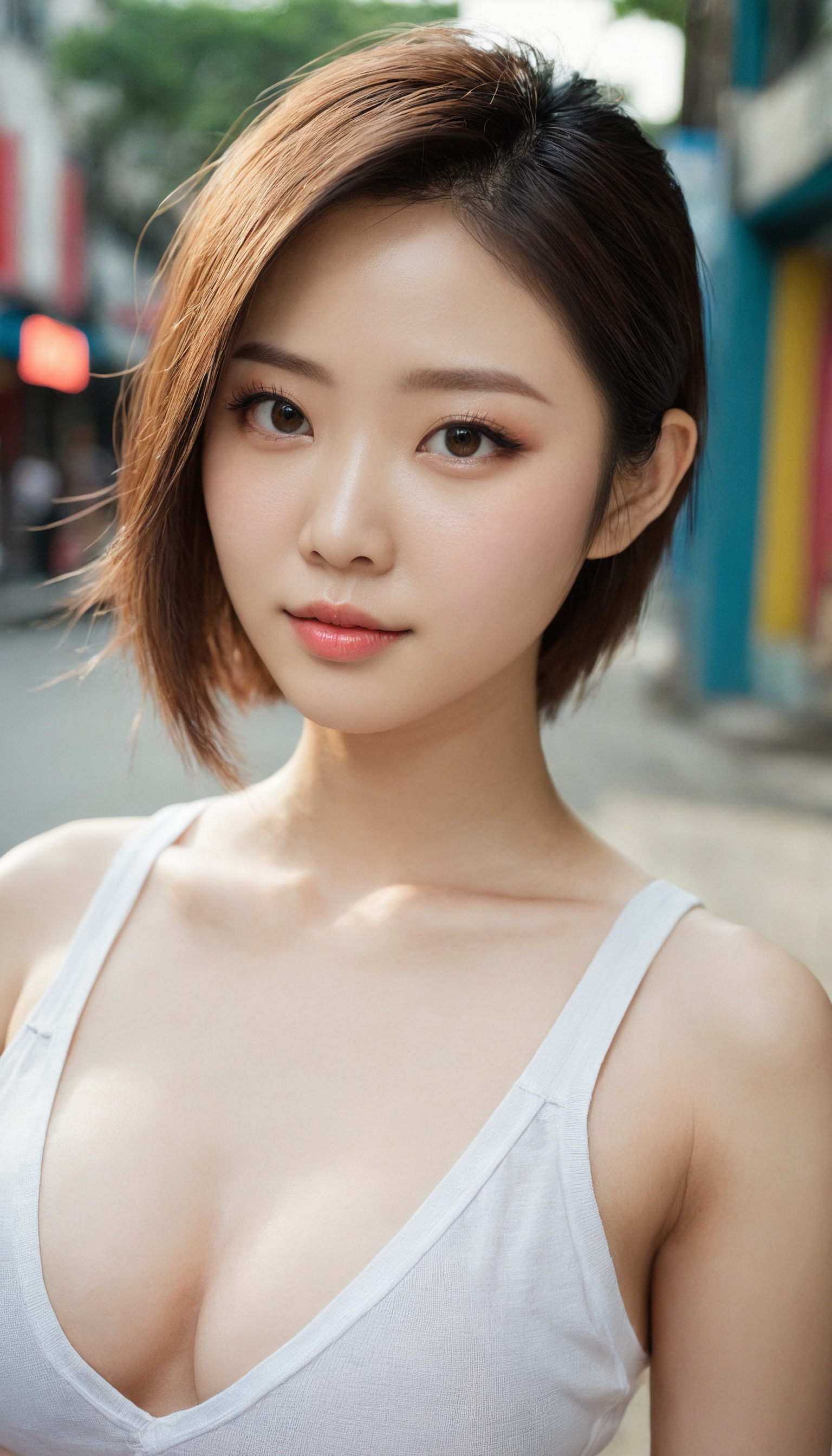 {"3": {"inputs": {"seed": 617308373077137, "steps": 32, "cfg": 5.31, "sampler_name": "dpmpp_2m", "scheduler": "karras", "denoise": 1.0, "model": ["27", 0], "positive": ["6", 0], "negative": ["7", 0], "latent_image": ["5", 0]}, "class_type": "KSampler"}, "4": {"inputs": {"ckpt_name": "juggernautxl.safetensors"}, "class_type": "CheckpointLoaderSimple"}, "5": {"inputs": {"width": 768, "height": 1344, "batch_size": 1}, "class_type": "EmptyLatentImage"}, "6": {"inputs": {"text": "28 year old girl, (chinese:0.97), (idol:1.06), (double eyelids:1.10), (seductive facial expression:0.99), (sexy lips:0.95), (slim:1.10), (beautiful eyes:1.06), (pale skin:1.03), (seductive pose:0.96), (detailed face:1.01), (cute:1.06), (temptress:0.97), (eyelashes:0.96), (blush:0.98), (in a seductive pose:1.09), (large perky breasts:1.00), (cleavage:0.96), (thigh gap:0.95), (white tanktop:1.05), busy street, (detailed skin:1.00), (natural looking skin:1.06), (candid cinema:1.07), (RAW:1.02), (skin fuzz:1.01), (portra:1.05), (soft lighting:1.00), (film:1.07), (textured skin:1.04)", "clip": ["27", 1]}, "class_type": "CLIPTextEncode"}, "7": {"inputs": {"text": "(open mouth:1.10), (bad hands:1.08), (low resolution:1.08), (worst quality:1.09), (watermark:1.10), (distorted:1.07), (twisted:1.08)", "clip": ["27", 1]}, "class_type": "CLIPTextEncode"}, "8": {"inputs": {"samples": ["3", 0], "vae": ["4", 2]}, "class_type": "VAEDecode"}, "25": {"inputs": {"lora_name": "nudify_xl.safetensors", "strength_model": 0.1, "strength_clip": 0.0, "model": ["4", 0], "clip": ["4", 1]}, "class_type": "LoraLoader"}, "26": {"inputs": {"lora_name": "shirtlift_SDXL_v2.safetensors", "strength_model": 0.17, "strength_clip": 0.02, "model": ["25", 0], "clip": ["25", 1]}, "class_type": "LoraLoader"}, "27": {"inputs": {"lora_name": "PerfectEyesXL.safetensors", "strength_model": 0.01, "strength_clip": 0.08, "model": ["26", 0], "clip": ["26", 1]}, "class_type": "LoraLoader"}, "30": {"inputs": {"model_name": "4x_NMKD-Superscale-SP_178000_G.pth"}, "class_type": "UpscaleModelLoader"}, "31": {"inputs": {"upscale_model": ["30", 0], "image": ["8", 0]}, "class_type": "ImageUpscaleWithModel"}, "32": {"inputs": {"upscale_method": "lanczos", "scale_by": 0.5, "image": ["31", 0]}, "class_type": "ImageScaleBy"}, "33": {"inputs": {"pixels": ["32", 0], "vae": ["4", 2]}, "class_type": "VAEEncode"}, "34": {"inputs": {"seed": 617308373077137, "steps": 32, "cfg": 5.31, "sampler_name": "dpmpp_2m", "scheduler": "karras", "denoise": 0.3, "model": ["27", 0], "positive": ["6", 0], "negative": ["7", 0], "latent_image": ["33", 0]}, "class_type": "KSampler"}, "36": {"inputs": {"samples": ["34", 0], "vae": ["4", 2]}, "class_type": "VAEDecode"}, "39": {"inputs": {"filename_prefix": "comfyapi-1732951593346", "images": ["36", 0]}, "class_type": "SaveImage"}}