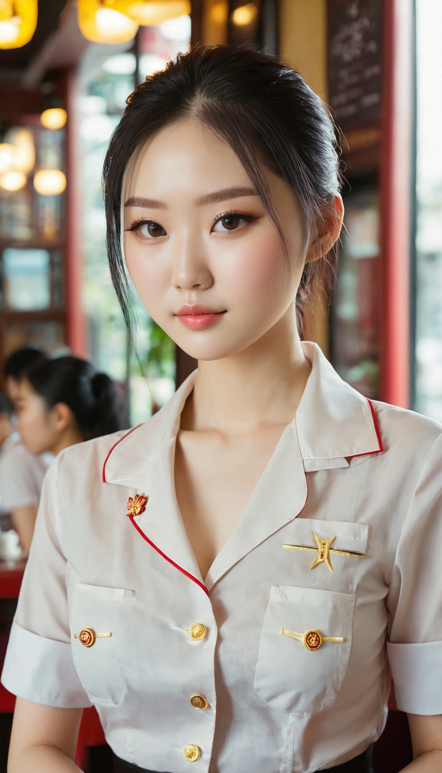 {"3": {"inputs": {"seed": 509753953113551, "steps": 32, "cfg": 5.67, "sampler_name": "dpmpp_2m", "scheduler": "karras", "denoise": 1.0, "model": ["27", 0], "positive": ["6", 0], "negative": ["7", 0], "latent_image": ["5", 0]}, "class_type": "KSampler"}, "4": {"inputs": {"ckpt_name": "juggernautxl.safetensors"}, "class_type": "CheckpointLoaderSimple"}, "5": {"inputs": {"width": 768, "height": 1344, "batch_size": 1}, "class_type": "EmptyLatentImage"}, "6": {"inputs": {"text": "21 year old girl, (chinese:1.08), (temptress:1.12), (seductive facial expression:1.05), (pale skin:1.02), (slim:1.01), (cute:0.96), (sexy lips:1.10), (seductive pose:1.08), (detailed face:0.97), (double eyelids:0.97), (blush:1.01), (idol:1.10), (eyelashes:1.06), (in a seductive pose:1.05), (large perky breasts:1.04), (cleavage:1.02), (thigh gap:1.10), (a waitress in uniform:1.07) working at a restaurant, (detailed skin:1.04), (RAW:1.02), (candid cinema:1.04), (textured skin:1.04), (natural looking skin:1.08), (portra:1.08), (skin fuzz:1.08), (soft lighting:1.09), (film:1.00)", "clip": ["27", 1]}, "class_type": "CLIPTextEncode"}, "7": {"inputs": {"text": "(bad hands:1.11), (twisted:1.05), (watermark:1.07), (open mouth:1.05), (low resolution:1.05), (worst quality:1.11), (distorted:1.06)", "clip": ["27", 1]}, "class_type": "CLIPTextEncode"}, "8": {"inputs": {"samples": ["3", 0], "vae": ["4", 2]}, "class_type": "VAEDecode"}, "25": {"inputs": {"lora_name": "nudify_xl.safetensors", "strength_model": 0.09, "strength_clip": 0.0, "model": ["4", 0], "clip": ["4", 1]}, "class_type": "LoraLoader"}, "26": {"inputs": {"lora_name": "shirtlift_SDXL_v2.safetensors", "strength_model": 0.02, "strength_clip": 0.15, "model": ["25", 0], "clip": ["25", 1]}, "class_type": "LoraLoader"}, "27": {"inputs": {"lora_name": "PerfectEyesXL.safetensors", "strength_model": 0.03, "strength_clip": 0.05, "model": ["26", 0], "clip": ["26", 1]}, "class_type": "LoraLoader"}, "30": {"inputs": {"model_name": "4x_NMKD-Superscale-SP_178000_G.pth"}, "class_type": "UpscaleModelLoader"}, "31": {"inputs": {"upscale_model": ["30", 0], "image": ["8", 0]}, "class_type": "ImageUpscaleWithModel"}, "32": {"inputs": {"upscale_method": "lanczos", "scale_by": 0.5, "image": ["31", 0]}, "class_type": "ImageScaleBy"}, "33": {"inputs": {"pixels": ["32", 0], "vae": ["4", 2]}, "class_type": "VAEEncode"}, "34": {"inputs": {"seed": 509753953113551, "steps": 32, "cfg": 5.67, "sampler_name": "dpmpp_2m", "scheduler": "karras", "denoise": 0.3, "model": ["27", 0], "positive": ["6", 0], "negative": ["7", 0], "latent_image": ["33", 0]}, "class_type": "KSampler"}, "36": {"inputs": {"samples": ["34", 0], "vae": ["4", 2]}, "class_type": "VAEDecode"}, "39": {"inputs": {"filename_prefix": "comfyapi-1713464369930", "images": ["36", 0]}, "class_type": "SaveImage"}}