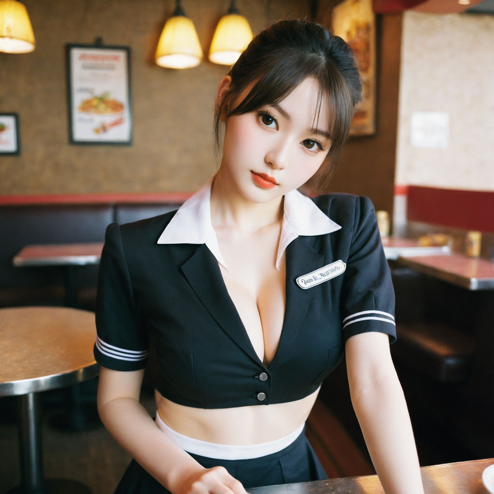 {"3": {"inputs": {"seed": 576250657811700, "steps": 32, "cfg": 5.83, "sampler_name": "dpmpp_2m", "scheduler": "karras", "denoise": 1.0, "model": ["27", 0], "positive": ["6", 0], "negative": ["7", 0], "latent_image": ["5", 0]}, "class_type": "KSampler"}, "4": {"inputs": {"ckpt_name": "helloworldxl.safetensors"}, "class_type": "CheckpointLoaderSimple"}, "5": {"inputs": {"width": 1024, "height": 1024, "batch_size": 1}, "class_type": "EmptyLatentImage"}, "6": {"inputs": {"text": "21 year old girl, (blush:0.98), (detailed face:0.96), (sexy lips:1.14), (pale skin:1.02), (cute:1.02), (eyelashes:1.09), (idol:1.08), (seductive pose:1.10), (slim:0.98), (temptress:1.01), (double eyelids:0.99), (beautiful eyes:1.13), (in a seductive pose:1.01), (large perky breasts:1.02), (cleavage:1.02), (thigh gap:1.03), (a waitress in uniform:1.14) working at a restaurant, (soft lighting:1.00), (detailed skin:1.05), (RAW:1.00), (portra:1.01), (film:1.08), (candid cinema:1.09), (skin fuzz:1.01), (textured skin:1.02), (natural looking skin:1.07)", "clip": ["27", 1]}, "class_type": "CLIPTextEncode"}, "7": {"inputs": {"text": "(bad hands:1.14), (twisted:1.07), (low resolution:1.06), (watermark:1.14), (open mouth:1.09), (worst quality:1.05), (distorted:1.06)", "clip": ["27", 1]}, "class_type": "CLIPTextEncode"}, "8": {"inputs": {"samples": ["3", 0], "vae": ["4", 2]}, "class_type": "VAEDecode"}, "25": {"inputs": {"lora_name": "nudify_xl.safetensors", "strength_model": 0.31, "strength_clip": 0.35, "model": ["4", 0], "clip": ["4", 1]}, "class_type": "LoraLoader"}, "26": {"inputs": {"lora_name": "shirtlift_SDXL_v2.safetensors", "strength_model": 0.07, "strength_clip": 0.12, "model": ["25", 0], "clip": ["25", 1]}, "class_type": "LoraLoader"}, "27": {"inputs": {"lora_name": "PerfectEyesXL.safetensors", "strength_model": 0.13, "strength_clip": 0.04, "model": ["26", 0], "clip": ["26", 1]}, "class_type": "LoraLoader"}, "30": {"inputs": {"model_name": "4x_NMKD-Superscale-SP_178000_G.pth"}, "class_type": "UpscaleModelLoader"}, "31": {"inputs": {"upscale_model": ["30", 0], "image": ["8", 0]}, "class_type": "ImageUpscaleWithModel"}, "32": {"inputs": {"upscale_method": "lanczos", "scale_by": 0.5, "image": ["31", 0]}, "class_type": "ImageScaleBy"}, "33": {"inputs": {"pixels": ["32", 0], "vae": ["4", 2]}, "class_type": "VAEEncode"}, "34": {"inputs": {"seed": 576250657811700, "steps": 32, "cfg": 5.83, "sampler_name": "dpmpp_2m", "scheduler": "karras", "denoise": 0.3, "model": ["27", 0], "positive": ["6", 0], "negative": ["7", 0], "latent_image": ["33", 0]}, "class_type": "KSampler"}, "36": {"inputs": {"samples": ["34", 0], "vae": ["4", 2]}, "class_type": "VAEDecode"}, "39": {"inputs": {"filename_prefix": "comfyapi-1732513437144", "images": ["36", 0]}, "class_type": "SaveImage"}}