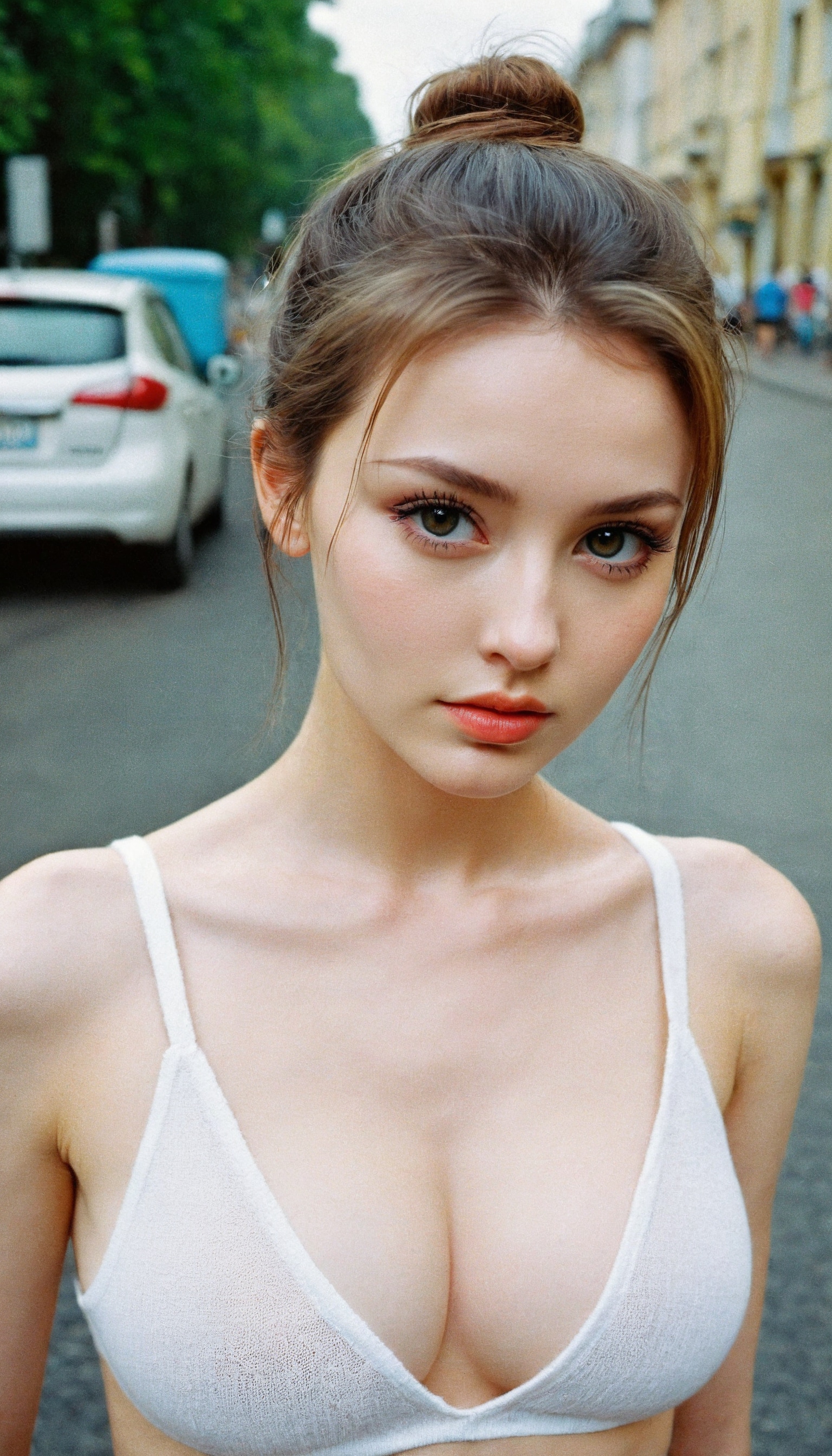 {"3": {"inputs": {"seed": 601861095136131, "steps": 32, "cfg": 6.69, "sampler_name": "dpmpp_2m", "scheduler": "karras", "denoise": 1.0, "model": ["27", 0], "positive": ["6", 0], "negative": ["7", 0], "latent_image": ["5", 0]}, "class_type": "KSampler"}, "4": {"inputs": {"ckpt_name": "helloworldxl.safetensors"}, "class_type": "CheckpointLoaderSimple"}, "5": {"inputs": {"width": 768, "height": 1344, "batch_size": 1}, "class_type": "EmptyLatentImage"}, "6": {"inputs": {"text": "25 year old girl, (ukrainian:1.12), (seductive pose:1.07), (beautiful eyes:0.99), (cute:0.99), (double eyelids:0.95), (pale skin:1.01), (temptress:0.98), (seductive facial expression:1.14), (eyelashes:1.10), (sexy lips:0.95), (blush:0.97), (slim:1.09), (detailed face:1.11), (idol:1.05), (in a seductive pose:1.05), (large perky breasts:0.98), (cleavage:1.12), (thigh gap:0.96), (white tanktop:1.06), busy street, (film:1.04), (skin fuzz:1.04), (RAW:1.06), (detailed skin:1.06), (textured skin:1.03), (portra:1.03), (natural looking skin:1.00), (soft lighting:1.06), (candid cinema:1.02)", "clip": ["27", 1]}, "class_type": "CLIPTextEncode"}, "7": {"inputs": {"text": "(distorted:1.10), (twisted:1.10), (worst quality:1.09), (low resolution:1.12), (open mouth:1.10), (bad hands:1.09)", "clip": ["27", 1]}, "class_type": "CLIPTextEncode"}, "8": {"inputs": {"samples": ["3", 0], "vae": ["4", 2]}, "class_type": "VAEDecode"}, "25": {"inputs": {"lora_name": "nudify_xl.safetensors", "strength_model": 0.38, "strength_clip": 0.09, "model": ["4", 0], "clip": ["4", 1]}, "class_type": "LoraLoader"}, "26": {"inputs": {"lora_name": "shirtlift_SDXL_v2.safetensors", "strength_model": 0.05, "strength_clip": 0.03, "model": ["25", 0], "clip": ["25", 1]}, "class_type": "LoraLoader"}, "27": {"inputs": {"lora_name": "PerfectEyesXL.safetensors", "strength_model": 0.17, "strength_clip": 0.11, "model": ["26", 0], "clip": ["26", 1]}, "class_type": "LoraLoader"}, "30": {"inputs": {"model_name": "4x_NMKD-Superscale-SP_178000_G.pth"}, "class_type": "UpscaleModelLoader"}, "31": {"inputs": {"upscale_model": ["30", 0], "image": ["8", 0]}, "class_type": "ImageUpscaleWithModel"}, "32": {"inputs": {"upscale_method": "lanczos", "scale_by": 0.5, "image": ["31", 0]}, "class_type": "ImageScaleBy"}, "33": {"inputs": {"pixels": ["32", 0], "vae": ["4", 2]}, "class_type": "VAEEncode"}, "34": {"inputs": {"seed": 601861095136131, "steps": 32, "cfg": 6.69, "sampler_name": "dpmpp_2m", "scheduler": "karras", "denoise": 0.3, "model": ["27", 0], "positive": ["6", 0], "negative": ["7", 0], "latent_image": ["33", 0]}, "class_type": "KSampler"}, "36": {"inputs": {"samples": ["34", 0], "vae": ["4", 2]}, "class_type": "VAEDecode"}, "39": {"inputs": {"filename_prefix": "comfyapi-1728092566060", "images": ["36", 0]}, "class_type": "SaveImage"}}