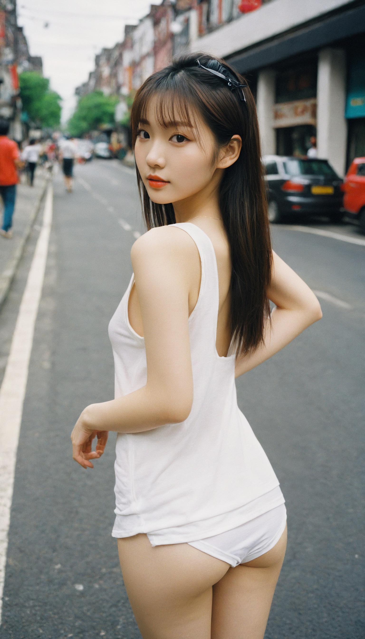 {"3": {"inputs": {"seed": 971878725257637, "steps": 32, "cfg": 6.9, "sampler_name": "dpmpp_2m", "scheduler": "karras", "denoise": 1.0, "model": ["27", 0], "positive": ["6", 0], "negative": ["7", 0], "latent_image": ["5", 0]}, "class_type": "KSampler"}, "4": {"inputs": {"ckpt_name": "helloworldxl.safetensors"}, "class_type": "CheckpointLoaderSimple"}, "5": {"inputs": {"width": 768, "height": 1344, "batch_size": 1}, "class_type": "EmptyLatentImage"}, "6": {"inputs": {"text": "22 year old girl, (irish:1.08), (chinese:0.95), (seductive facial expression:1.09), (idol:1.00), (double eyelids:1.08), (sexy lips:1.09), (blush:0.99), (cute:1.06), (detailed face:0.96), (beautiful eyes:1.08), (temptress:0.98), (slim:0.99), (eyelashes:0.98), (seductive pose:1.00), (perky ass:0.98), (exposed ass:1.03), (looking back:1.12), (sexy ass:1.00), (thigh gap:0.97), (white tanktop:1.14), busy street, (RAW:1.08), (soft lighting:1.02), (candid cinema:1.04), (textured skin:1.00), (detailed skin:1.08), (film:1.00), (portra:1.09), (skin fuzz:1.07), (natural looking skin:1.03)", "clip": ["27", 1]}, "class_type": "CLIPTextEncode"}, "7": {"inputs": {"text": "(twisted:1.05), (watermark:1.08), (open mouth:1.10), (worst quality:1.13), (bad hands:1.12), (low resolution:1.08), (distorted:1.12)", "clip": ["27", 1]}, "class_type": "CLIPTextEncode"}, "8": {"inputs": {"samples": ["3", 0], "vae": ["4", 2]}, "class_type": "VAEDecode"}, "25": {"inputs": {"lora_name": "nudify_xl.safetensors", "strength_model": 0.23, "strength_clip": 0.32, "model": ["4", 0], "clip": ["4", 1]}, "class_type": "LoraLoader"}, "26": {"inputs": {"lora_name": "shirtlift_SDXL_v2.safetensors", "strength_model": 0.09, "strength_clip": 0.05, "model": ["25", 0], "clip": ["25", 1]}, "class_type": "LoraLoader"}, "27": {"inputs": {"lora_name": "PerfectEyesXL.safetensors", "strength_model": 0.01, "strength_clip": 0.16, "model": ["26", 0], "clip": ["26", 1]}, "class_type": "LoraLoader"}, "30": {"inputs": {"model_name": "4x_NMKD-Superscale-SP_178000_G.pth"}, "class_type": "UpscaleModelLoader"}, "31": {"inputs": {"upscale_model": ["30", 0], "image": ["8", 0]}, "class_type": "ImageUpscaleWithModel"}, "32": {"inputs": {"upscale_method": "lanczos", "scale_by": 0.5, "image": ["31", 0]}, "class_type": "ImageScaleBy"}, "33": {"inputs": {"pixels": ["32", 0], "vae": ["4", 2]}, "class_type": "VAEEncode"}, "34": {"inputs": {"seed": 971878725257637, "steps": 32, "cfg": 6.9, "sampler_name": "dpmpp_2m", "scheduler": "karras", "denoise": 0.3, "model": ["27", 0], "positive": ["6", 0], "negative": ["7", 0], "latent_image": ["33", 0]}, "class_type": "KSampler"}, "36": {"inputs": {"samples": ["34", 0], "vae": ["4", 2]}, "class_type": "VAEDecode"}, "39": {"inputs": {"filename_prefix": "comfyapi-1732989302299", "images": ["36", 0]}, "class_type": "SaveImage"}}