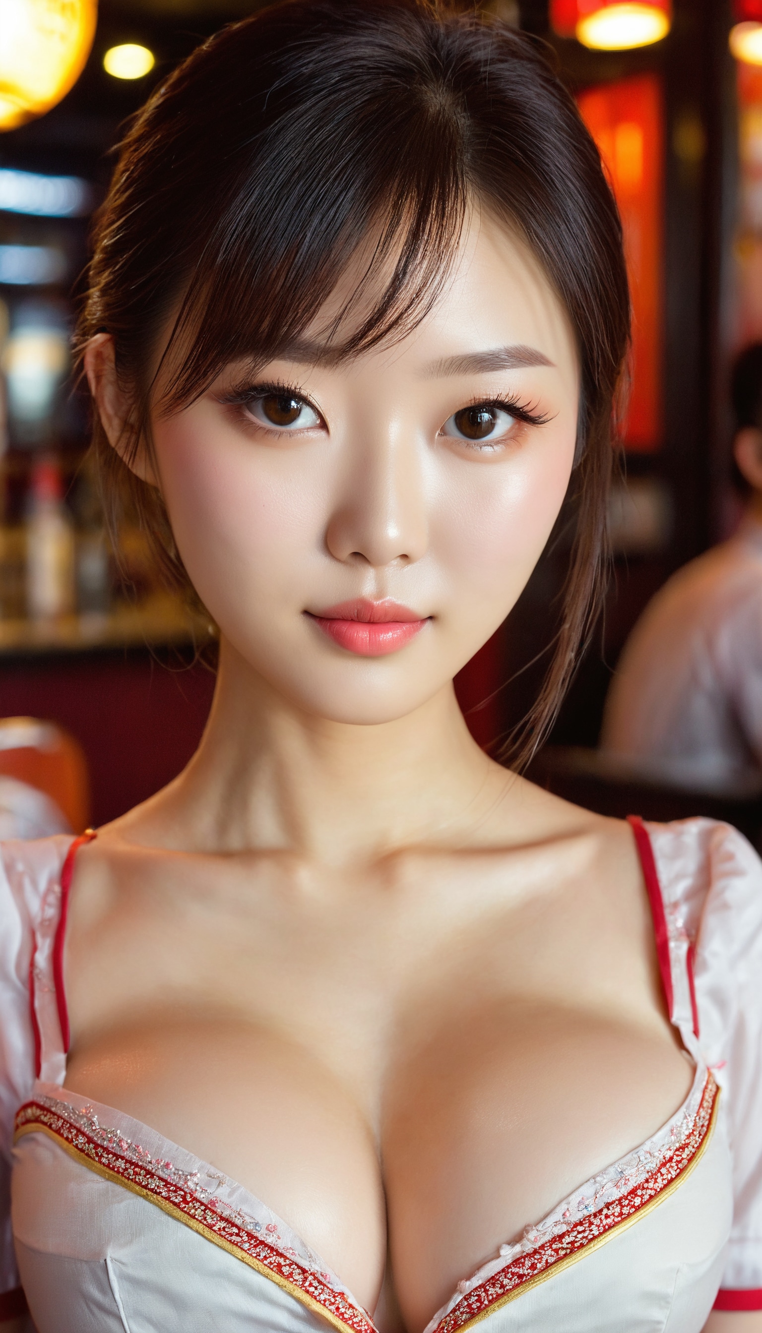 {"3": {"inputs": {"seed": 478170358610680, "steps": 32, "cfg": 7.65, "sampler_name": "dpmpp_2m", "scheduler": "karras", "denoise": 1.0, "model": ["27", 0], "positive": ["6", 0], "negative": ["7", 0], "latent_image": ["5", 0]}, "class_type": "KSampler"}, "4": {"inputs": {"ckpt_name": "juggernautxl.safetensors"}, "class_type": "CheckpointLoaderSimple"}, "5": {"inputs": {"width": 768, "height": 1344, "batch_size": 1}, "class_type": "EmptyLatentImage"}, "6": {"inputs": {"text": "26 year old girl, (chinese:1.08), (beautiful eyes:1.08), (detailed face:1.01), (slim:1.12), (blush:1.00), (sexy lips:1.06), (eyelashes:0.95), (seductive facial expression:0.95), (double eyelids:1.01), (pale skin:0.97), (temptress:1.08), (idol:1.13), (cute:1.04), (in a seductive pose:1.12), (large perky breasts:1.11), (cleavage:1.12), (thigh gap:1.08), (a waitress in uniform:1.04) working at a restaurant, (soft lighting:1.03), (candid cinema:1.03), (film:1.08), (natural looking skin:1.02), (detailed skin:1.04), (textured skin:1.04), (portra:1.02), (RAW:1.00), (skin fuzz:1.09)", "clip": ["27", 1]}, "class_type": "CLIPTextEncode"}, "7": {"inputs": {"text": "(distorted:1.11), (watermark:1.08), (low resolution:1.11), (twisted:1.14), (open mouth:1.11), (bad hands:1.14), (worst quality:1.05)", "clip": ["27", 1]}, "class_type": "CLIPTextEncode"}, "8": {"inputs": {"samples": ["3", 0], "vae": ["4", 2]}, "class_type": "VAEDecode"}, "25": {"inputs": {"lora_name": "nudify_xl.safetensors", "strength_model": 0.18, "strength_clip": 0.04, "model": ["4", 0], "clip": ["4", 1]}, "class_type": "LoraLoader"}, "26": {"inputs": {"lora_name": "shirtlift_SDXL_v2.safetensors", "strength_model": 0.03, "strength_clip": 0.05, "model": ["25", 0], "clip": ["25", 1]}, "class_type": "LoraLoader"}, "27": {"inputs": {"lora_name": "PerfectEyesXL.safetensors", "strength_model": 0.15, "strength_clip": 0.15, "model": ["26", 0], "clip": ["26", 1]}, "class_type": "LoraLoader"}, "30": {"inputs": {"model_name": "4x_NMKD-Superscale-SP_178000_G.pth"}, "class_type": "UpscaleModelLoader"}, "31": {"inputs": {"upscale_model": ["30", 0], "image": ["8", 0]}, "class_type": "ImageUpscaleWithModel"}, "32": {"inputs": {"upscale_method": "lanczos", "scale_by": 0.5, "image": ["31", 0]}, "class_type": "ImageScaleBy"}, "33": {"inputs": {"pixels": ["32", 0], "vae": ["4", 2]}, "class_type": "VAEEncode"}, "34": {"inputs": {"seed": 478170358610680, "steps": 32, "cfg": 7.65, "sampler_name": "dpmpp_2m", "scheduler": "karras", "denoise": 0.3, "model": ["27", 0], "positive": ["6", 0], "negative": ["7", 0], "latent_image": ["33", 0]}, "class_type": "KSampler"}, "36": {"inputs": {"samples": ["34", 0], "vae": ["4", 2]}, "class_type": "VAEDecode"}, "39": {"inputs": {"filename_prefix": "comfyapi-1724095431493", "images": ["36", 0]}, "class_type": "SaveImage"}}