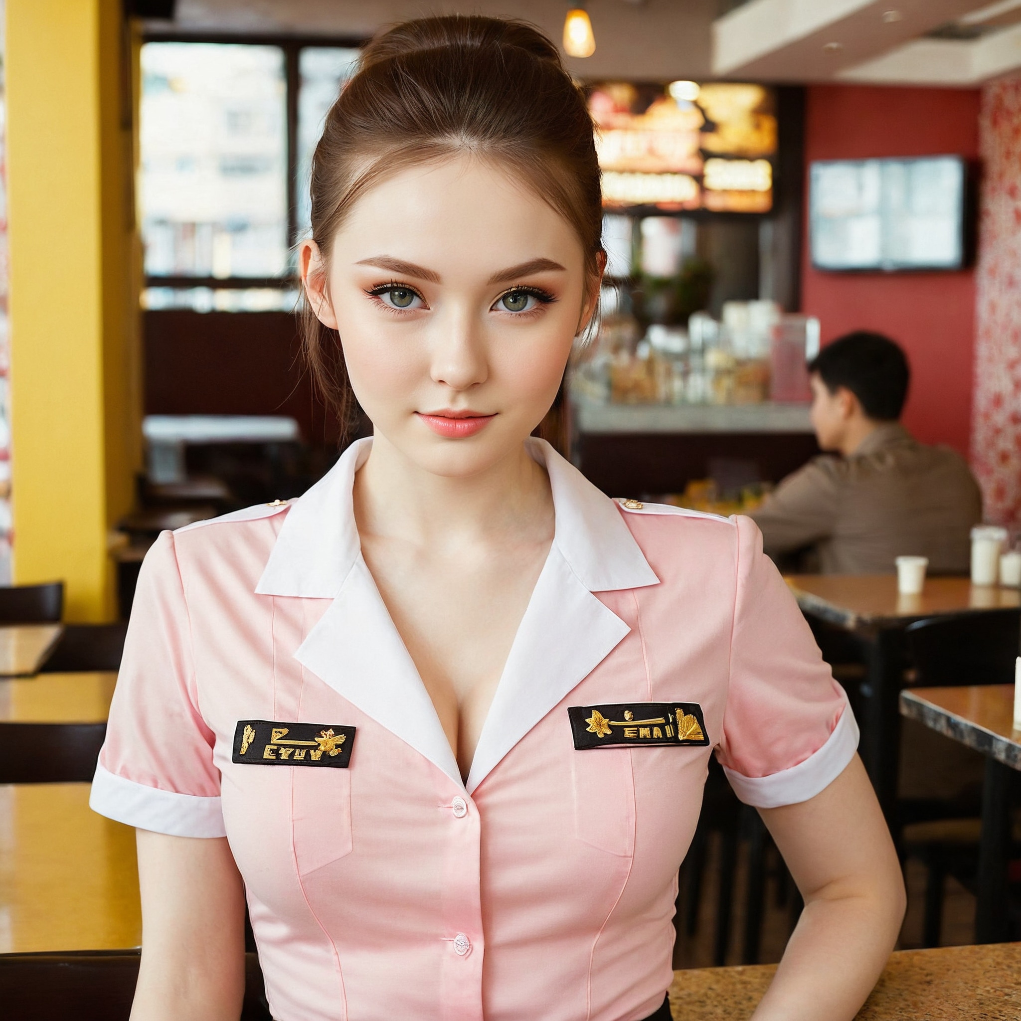 {"3": {"inputs": {"seed": 725136372268321, "steps": 64, "cfg": 7.69, "sampler_name": "dpmpp_2m", "scheduler": "karras", "denoise": 1.0, "model": ["27", 0], "positive": ["6", 0], "negative": ["7", 0], "latent_image": ["5", 0]}, "class_type": "KSampler"}, "4": {"inputs": {"ckpt_name": "juggernautXL_v8Rundiffusion.safetensors"}, "class_type": "CheckpointLoaderSimple"}, "5": {"inputs": {"width": 1024, "height": 1024, "batch_size": 1}, "class_type": "EmptyLatentImage"}, "6": {"inputs": {"text": "25 year old girl, (russian:1.13), (slim:1.14), (cute:0.97), (eyelashes:1.03), (seductive facial expression:0.99), (pale skin:1.06), (seductive pose:1.00), (sexy lips:1.12), (double eyelids:1.12), (blush:1.05), (temptress:0.97), (idol:1.08), (beautiful eyes:1.01), (detailed face:1.11), (in a seductive pose:1.12), (large perky breasts:1.03), (cleavage:1.05), (thigh gap:1.05), (a waitress in uniform:1.11) working at a restaurant, (portra:1.02), (textured skin:1.02), (RAW:1.09), (detailed skin:1.04), (natural looking skin:1.05), (soft lighting:1.06), (skin fuzz:1.03), (candid cinema:1.07), (film:1.01)", "clip": ["27", 1]}, "class_type": "CLIPTextEncode"}, "7": {"inputs": {"text": "(worst quality:1.12), (watermark:1.07), (bad hands:1.09), (twisted:1.14), (low resolution:1.08), (open mouth:1.11), (distorted:1.12)", "clip": ["27", 1]}, "class_type": "CLIPTextEncode"}, "8": {"inputs": {"samples": ["3", 0], "vae": ["4", 2]}, "class_type": "VAEDecode"}, "25": {"inputs": {"lora_name": "nudify_xl.safetensors", "strength_model": 0.05, "strength_clip": 0.07, "model": ["4", 0], "clip": ["4", 1]}, "class_type": "LoraLoader"}, "26": {"inputs": {"lora_name": "shirtlift_SDXL_v2.safetensors", "strength_model": 0.1, "strength_clip": 0.18, "model": ["25", 0], "clip": ["25", 1]}, "class_type": "LoraLoader"}, "27": {"inputs": {"lora_name": "PerfectEyesXL.safetensors", "strength_model": 0.11, "strength_clip": 0.12, "model": ["26", 0], "clip": ["26", 1]}, "class_type": "LoraLoader"}, "30": {"inputs": {"model_name": "4x_NMKD-Superscale-SP_178000_G.pth"}, "class_type": "UpscaleModelLoader"}, "31": {"inputs": {"upscale_model": ["30", 0], "image": ["8", 0]}, "class_type": "ImageUpscaleWithModel"}, "32": {"inputs": {"upscale_method": "lanczos", "scale_by": 0.5, "image": ["31", 0]}, "class_type": "ImageScaleBy"}, "33": {"inputs": {"pixels": ["32", 0], "vae": ["4", 2]}, "class_type": "VAEEncode"}, "34": {"inputs": {"seed": 725136372268321, "steps": 64, "cfg": 7.69, "sampler_name": "dpmpp_2m", "scheduler": "karras", "denoise": 0.3, "model": ["27", 0], "positive": ["6", 0], "negative": ["7", 0], "latent_image": ["33", 0]}, "class_type": "KSampler"}, "36": {"inputs": {"samples": ["34", 0], "vae": ["4", 2]}, "class_type": "VAEDecode"}, "39": {"inputs": {"filename_prefix": "comfyapi-1707822659142", "images": ["36", 0]}, "class_type": "SaveImage"}}