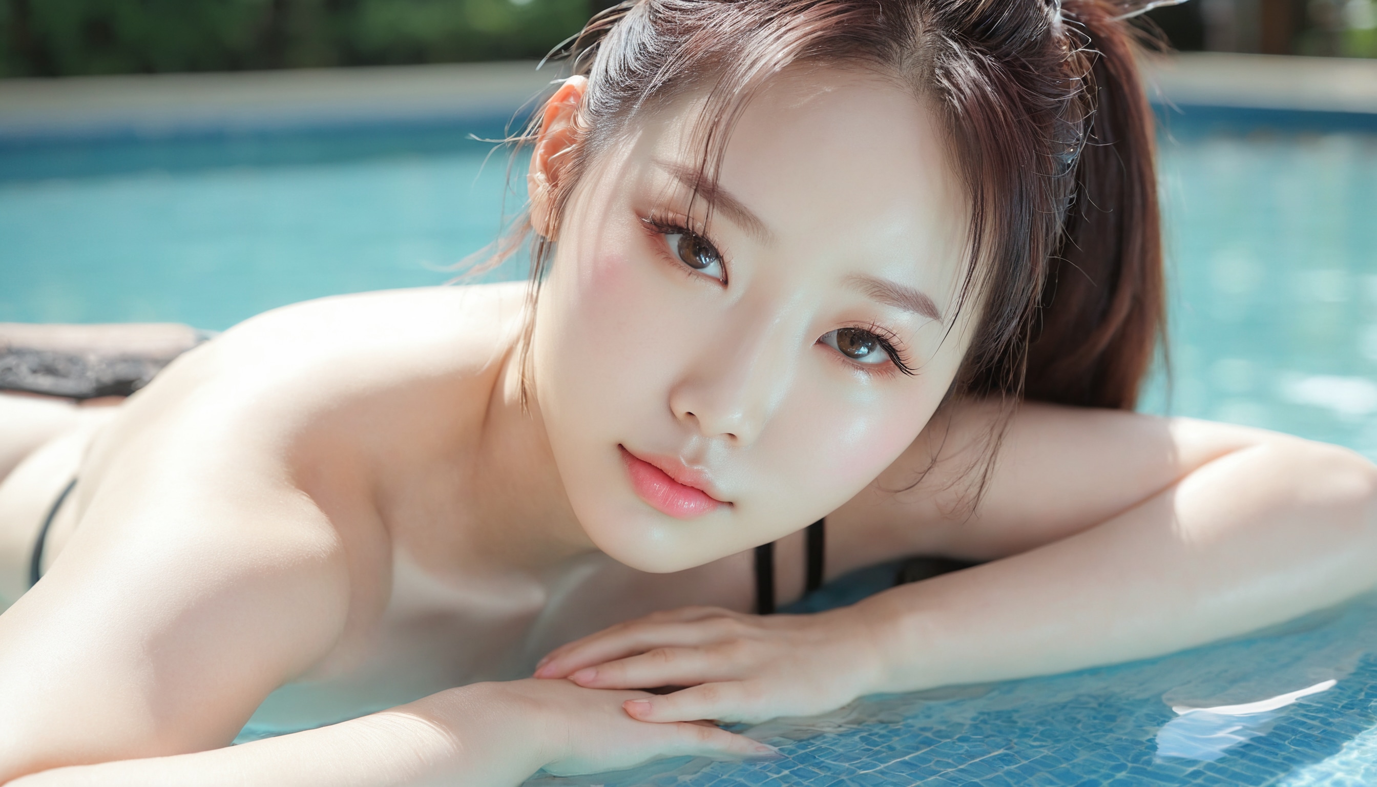 {"3": {"inputs": {"seed": 215684708878869, "steps": 32, "cfg": 6.42, "sampler_name": "dpmpp_2m", "scheduler": "karras", "denoise": 1.0, "model": ["27", 0], "positive": ["6", 0], "negative": ["7", 0], "latent_image": ["5", 0]}, "class_type": "KSampler"}, "4": {"inputs": {"ckpt_name": "juggernautxl.safetensors"}, "class_type": "CheckpointLoaderSimple"}, "5": {"inputs": {"width": 1344, "height": 768, "batch_size": 1}, "class_type": "EmptyLatentImage"}, "6": {"inputs": {"text": "22 year old girl, (korean:0.97), (idol:1.09), (blush:1.14), (double eyelids:1.04), (temptress:0.97), (seductive pose:1.06), (cute:1.14), (beautiful eyes:0.96), (sexy lips:1.09), (seductive facial expression:0.96), (pale skin:1.03), (eyelashes:1.08), (detailed face:1.08), (slim:1.13), (in a seductive pose:1.04), (large perky breasts:1.02), (cleavage:1.11), (thigh gap:1.04), (in a swimsuit:0.97) at a pool, (portra:1.06), (RAW:1.08), (soft lighting:1.08), (natural looking skin:1.01), (detailed skin:1.01), (film:1.06), (textured skin:1.03), (candid cinema:1.09), (skin fuzz:1.08)", "clip": ["27", 1]}, "class_type": "CLIPTextEncode"}, "7": {"inputs": {"text": "(worst quality:1.09), (watermark:1.10), (twisted:1.14), (distorted:1.12), (open mouth:1.05), (bad hands:1.14), (low resolution:1.10)", "clip": ["27", 1]}, "class_type": "CLIPTextEncode"}, "8": {"inputs": {"samples": ["3", 0], "vae": ["4", 2]}, "class_type": "VAEDecode"}, "25": {"inputs": {"lora_name": "nudify_xl.safetensors", "strength_model": 0.1, "strength_clip": 0.39, "model": ["4", 0], "clip": ["4", 1]}, "class_type": "LoraLoader"}, "26": {"inputs": {"lora_name": "shirtlift_SDXL_v2.safetensors", "strength_model": 0.0, "strength_clip": 0.01, "model": ["25", 0], "clip": ["25", 1]}, "class_type": "LoraLoader"}, "27": {"inputs": {"lora_name": "PerfectEyesXL.safetensors", "strength_model": 0.07, "strength_clip": 0.14, "model": ["26", 0], "clip": ["26", 1]}, "class_type": "LoraLoader"}, "30": {"inputs": {"model_name": "4x_NMKD-Superscale-SP_178000_G.pth"}, "class_type": "UpscaleModelLoader"}, "31": {"inputs": {"upscale_model": ["30", 0], "image": ["8", 0]}, "class_type": "ImageUpscaleWithModel"}, "32": {"inputs": {"upscale_method": "lanczos", "scale_by": 0.5, "image": ["31", 0]}, "class_type": "ImageScaleBy"}, "33": {"inputs": {"pixels": ["32", 0], "vae": ["4", 2]}, "class_type": "VAEEncode"}, "34": {"inputs": {"seed": 215684708878869, "steps": 32, "cfg": 6.42, "sampler_name": "dpmpp_2m", "scheduler": "karras", "denoise": 0.3, "model": ["27", 0], "positive": ["6", 0], "negative": ["7", 0], "latent_image": ["33", 0]}, "class_type": "KSampler"}, "36": {"inputs": {"samples": ["34", 0], "vae": ["4", 2]}, "class_type": "VAEDecode"}, "39": {"inputs": {"filename_prefix": "comfyapi-1726694523534", "images": ["36", 0]}, "class_type": "SaveImage"}}