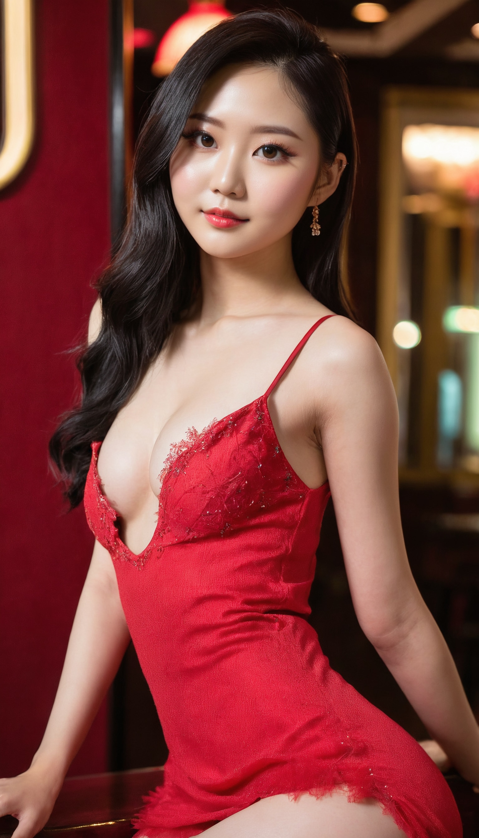 {"3": {"inputs": {"seed": 304300094231793, "steps": 32, "cfg": 7.1, "sampler_name": "dpmpp_2m", "scheduler": "karras", "denoise": 1.0, "model": ["27", 0], "positive": ["6", 0], "negative": ["7", 0], "latent_image": ["5", 0]}, "class_type": "KSampler"}, "4": {"inputs": {"ckpt_name": "juggernautxl.safetensors"}, "class_type": "CheckpointLoaderSimple"}, "5": {"inputs": {"width": 768, "height": 1344, "batch_size": 1}, "class_type": "EmptyLatentImage"}, "6": {"inputs": {"text": "23 year old girl, (taiwanese:1.13), (temptress:1.02), (idol:1.03), (eyelashes:1.14), (blush:1.05), (pale skin:0.96), (seductive pose:0.98), (sexy lips:0.97), (double eyelids:1.08), (detailed face:0.96), (beautiful eyes:1.08), (cute:0.95), (slim:0.97), (seductive facial expression:0.96), (perky ass:1.10), (exposed ass:1.06), (looking back:1.01), (sexy ass:1.01), (thigh gap:1.03), (wearing a low-cut red dress:1.03) at a ballroom, (soft lighting:1.00), (RAW:1.09), (film:1.00), (portra:1.04), (skin fuzz:1.05), (natural looking skin:1.06), (candid cinema:1.03), (detailed skin:1.00), (textured skin:1.08)", "clip": ["27", 1]}, "class_type": "CLIPTextEncode"}, "7": {"inputs": {"text": "(bad hands:1.10), (open mouth:1.11), (watermark:1.13), (low resolution:1.13), (distorted:1.10), (worst quality:1.10), (twisted:1.05)", "clip": ["27", 1]}, "class_type": "CLIPTextEncode"}, "8": {"inputs": {"samples": ["3", 0], "vae": ["4", 2]}, "class_type": "VAEDecode"}, "25": {"inputs": {"lora_name": "nudify_xl.safetensors", "strength_model": 0.34, "strength_clip": 0.11, "model": ["4", 0], "clip": ["4", 1]}, "class_type": "LoraLoader"}, "26": {"inputs": {"lora_name": "shirtlift_SDXL_v2.safetensors", "strength_model": 0.13, "strength_clip": 0.11, "model": ["25", 0], "clip": ["25", 1]}, "class_type": "LoraLoader"}, "27": {"inputs": {"lora_name": "PerfectEyesXL.safetensors", "strength_model": 0.04, "strength_clip": 0.07, "model": ["26", 0], "clip": ["26", 1]}, "class_type": "LoraLoader"}, "30": {"inputs": {"model_name": "4x_NMKD-Superscale-SP_178000_G.pth"}, "class_type": "UpscaleModelLoader"}, "31": {"inputs": {"upscale_model": ["30", 0], "image": ["8", 0]}, "class_type": "ImageUpscaleWithModel"}, "32": {"inputs": {"upscale_method": "lanczos", "scale_by": 0.5, "image": ["31", 0]}, "class_type": "ImageScaleBy"}, "33": {"inputs": {"pixels": ["32", 0], "vae": ["4", 2]}, "class_type": "VAEEncode"}, "34": {"inputs": {"seed": 304300094231793, "steps": 32, "cfg": 7.1, "sampler_name": "dpmpp_2m", "scheduler": "karras", "denoise": 0.3, "model": ["27", 0], "positive": ["6", 0], "negative": ["7", 0], "latent_image": ["33", 0]}, "class_type": "KSampler"}, "36": {"inputs": {"samples": ["34", 0], "vae": ["4", 2]}, "class_type": "VAEDecode"}, "39": {"inputs": {"filename_prefix": "comfyapi-1724235392996", "images": ["36", 0]}, "class_type": "SaveImage"}}
