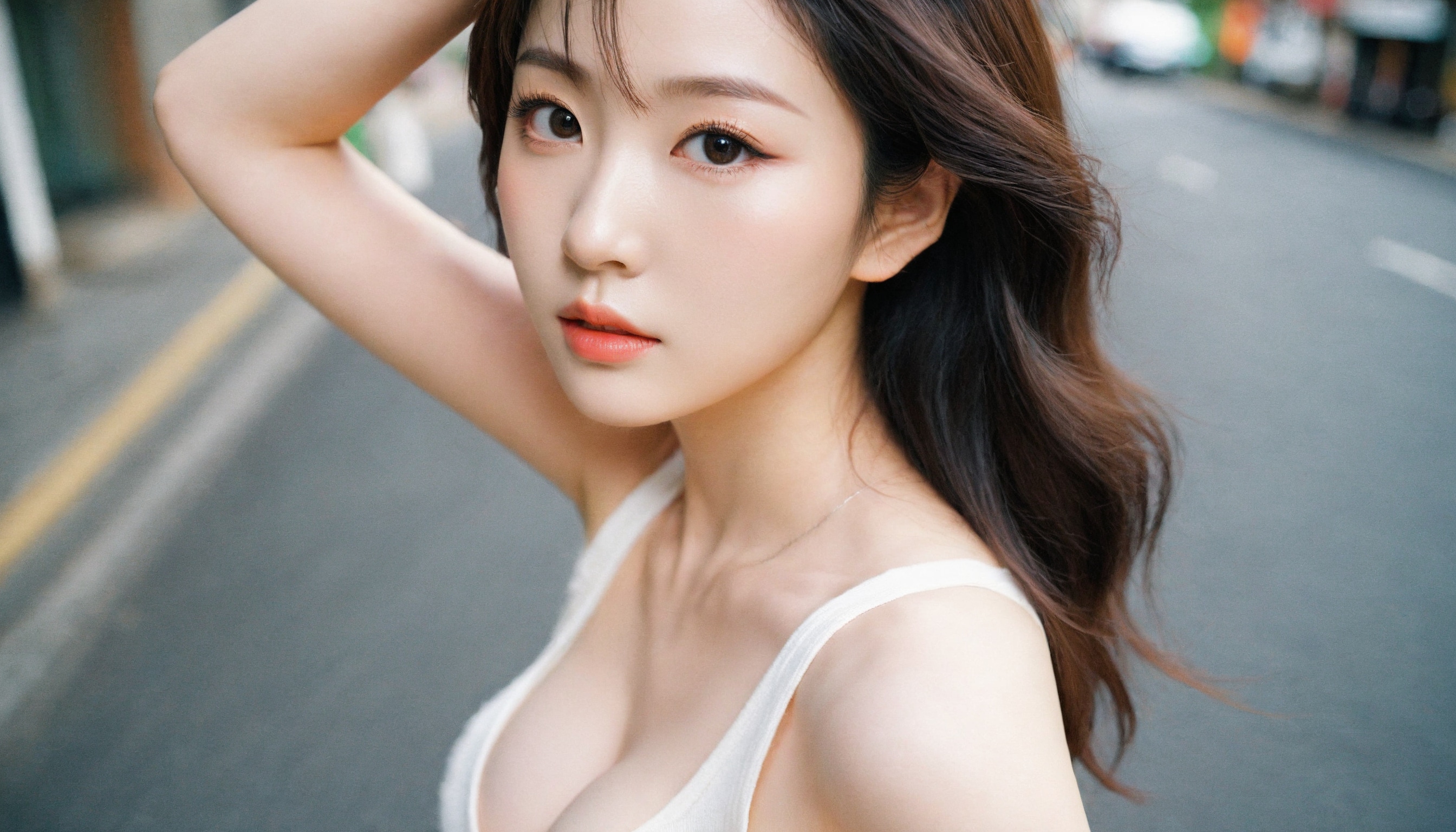 {"3": {"inputs": {"seed": 336374860047066, "steps": 64, "cfg": 5.47, "sampler_name": "dpmpp_2m", "scheduler": "karras", "denoise": 1.0, "model": ["27", 0], "positive": ["6", 0], "negative": ["7", 0], "latent_image": ["5", 0]}, "class_type": "KSampler"}, "4": {"inputs": {"ckpt_name": "leosamsHelloworldSDXL_helloworldSDXL32DPO.safetensors"}, "class_type": "CheckpointLoaderSimple"}, "5": {"inputs": {"width": 1344, "height": 768, "batch_size": 1}, "class_type": "EmptyLatentImage"}, "6": {"inputs": {"text": "27 year old girl, (korean:0.95), (japanese:1.05), (temptress:0.97), (seductive pose:1.02), (beautiful eyes:1.08), (idol:1.08), (cute:0.96), (blush:0.95), (detailed face:0.97), (double eyelids:0.99), (eyelashes:1.11), (sexy lips:0.99), (slim:1.00), (seductive facial expression:1.07), (pale skin:1.04), (in a seductive pose:1.01), (large perky breasts:1.08), (cleavage:0.97), (thigh gap:0.95), (white tanktop:0.98), busy street, (skin fuzz:1.07), (natural looking skin:1.00), (candid cinema:1.02), (soft lighting:1.04), (portra:1.00), (textured skin:1.09), (detailed skin:1.04), (film:1.01), (RAW:1.03)", "clip": ["27", 1]}, "class_type": "CLIPTextEncode"}, "7": {"inputs": {"text": "(distorted:1.12), (low resolution:1.07), (twisted:1.11), (open mouth:1.08), (watermark:1.06), (worst quality:1.07), (bad hands:1.05)", "clip": ["27", 1]}, "class_type": "CLIPTextEncode"}, "8": {"inputs": {"samples": ["3", 0], "vae": ["4", 2]}, "class_type": "VAEDecode"}, "25": {"inputs": {"lora_name": "nudify_xl.safetensors", "strength_model": 0.07, "strength_clip": 0.26, "model": ["4", 0], "clip": ["4", 1]}, "class_type": "LoraLoader"}, "26": {"inputs": {"lora_name": "shirtlift_SDXL_v2.safetensors", "strength_model": 0.03, "strength_clip": 0.12, "model": ["25", 0], "clip": ["25", 1]}, "class_type": "LoraLoader"}, "27": {"inputs": {"lora_name": "PerfectEyesXL.safetensors", "strength_model": 0.01, "strength_clip": 0.05, "model": ["26", 0], "clip": ["26", 1]}, "class_type": "LoraLoader"}, "30": {"inputs": {"model_name": "4x_NMKD-Superscale-SP_178000_G.pth"}, "class_type": "UpscaleModelLoader"}, "31": {"inputs": {"upscale_model": ["30", 0], "image": ["8", 0]}, "class_type": "ImageUpscaleWithModel"}, "32": {"inputs": {"upscale_method": "lanczos", "scale_by": 0.5, "image": ["31", 0]}, "class_type": "ImageScaleBy"}, "33": {"inputs": {"pixels": ["32", 0], "vae": ["4", 2]}, "class_type": "VAEEncode"}, "34": {"inputs": {"seed": 336374860047066, "steps": 64, "cfg": 5.47, "sampler_name": "dpmpp_2m", "scheduler": "karras", "denoise": 0.3, "model": ["27", 0], "positive": ["6", 0], "negative": ["7", 0], "latent_image": ["33", 0]}, "class_type": "KSampler"}, "36": {"inputs": {"samples": ["34", 0], "vae": ["4", 2]}, "class_type": "VAEDecode"}, "39": {"inputs": {"filename_prefix": "comfyapi-1707649185048", "images": ["36", 0]}, "class_type": "SaveImage"}}