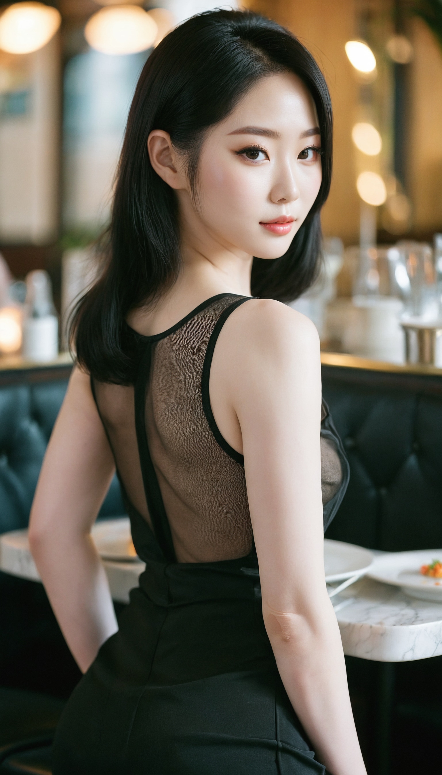 {"3": {"inputs": {"seed": 416604338795136, "steps": 64, "cfg": 6.39, "sampler_name": "dpmpp_2m", "scheduler": "karras", "denoise": 1.0, "model": ["27", 0], "positive": ["6", 0], "negative": ["7", 0], "latent_image": ["5", 0]}, "class_type": "KSampler"}, "4": {"inputs": {"ckpt_name": "juggernautxl.safetensors"}, "class_type": "CheckpointLoaderSimple"}, "5": {"inputs": {"width": 768, "height": 1344, "batch_size": 1}, "class_type": "EmptyLatentImage"}, "6": {"inputs": {"text": "28 year old girl, (korean:1.10), (temptress:1.10), (seductive pose:1.10), (pale skin:1.08), (idol:1.14), (eyelashes:1.09), (beautiful eyes:1.10), (slim:1.08), (seductive facial expression:1.11), (blush:0.96), (detailed face:0.99), (sexy lips:1.14), (perky ass:0.97), (exposed ass:0.97), (looking back:1.10), (sexy ass:1.13), (thigh gap:1.00), (wearing a little black dress:1.10) at a fine dining restaurant, (natural looking skin:1.08), (film:1.01), (skin fuzz:1.06), (candid cinema:1.07), (soft lighting:1.02), (portra:1.09), (RAW:1.06), (textured skin:1.03)", "clip": ["27", 1]}, "class_type": "CLIPTextEncode"}, "7": {"inputs": {"text": "(bad hands:1.05), (low resolution:1.08), (open mouth:1.05), (worst quality:1.13), (twisted:1.10), (watermark:1.07), (distorted:1.11)", "clip": ["27", 1]}, "class_type": "CLIPTextEncode"}, "8": {"inputs": {"samples": ["3", 0], "vae": ["4", 2]}, "class_type": "VAEDecode"}, "25": {"inputs": {"lora_name": "nudify_xl.safetensors", "strength_model": 0.0, "strength_clip": 0.27, "model": ["4", 0], "clip": ["4", 1]}, "class_type": "LoraLoader"}, "26": {"inputs": {"lora_name": "shirtlift_SDXL_v2.safetensors", "strength_model": 0.0, "strength_clip": 0.06, "model": ["25", 0], "clip": ["25", 1]}, "class_type": "LoraLoader"}, "27": {"inputs": {"lora_name": "PerfectEyesXL.safetensors", "strength_model": 0.02, "strength_clip": 0.12, "model": ["26", 0], "clip": ["26", 1]}, "class_type": "LoraLoader"}, "30": {"inputs": {"model_name": "4x_NMKD-Superscale-SP_178000_G.pth"}, "class_type": "UpscaleModelLoader"}, "31": {"inputs": {"upscale_model": ["30", 0], "image": ["8", 0]}, "class_type": "ImageUpscaleWithModel"}, "32": {"inputs": {"upscale_method": "lanczos", "scale_by": 0.5, "image": ["31", 0]}, "class_type": "ImageScaleBy"}, "33": {"inputs": {"pixels": ["32", 0], "vae": ["4", 2]}, "class_type": "VAEEncode"}, "34": {"inputs": {"seed": 416604338795136, "steps": 64, "cfg": 6.39, "sampler_name": "dpmpp_2m", "scheduler": "karras", "denoise": 0.3, "model": ["27", 0], "positive": ["6", 0], "negative": ["7", 0], "latent_image": ["33", 0]}, "class_type": "KSampler"}, "36": {"inputs": {"samples": ["34", 0], "vae": ["4", 2]}, "class_type": "VAEDecode"}, "39": {"inputs": {"filename_prefix": "comfyapi-1714781010783", "images": ["36", 0]}, "class_type": "SaveImage"}}