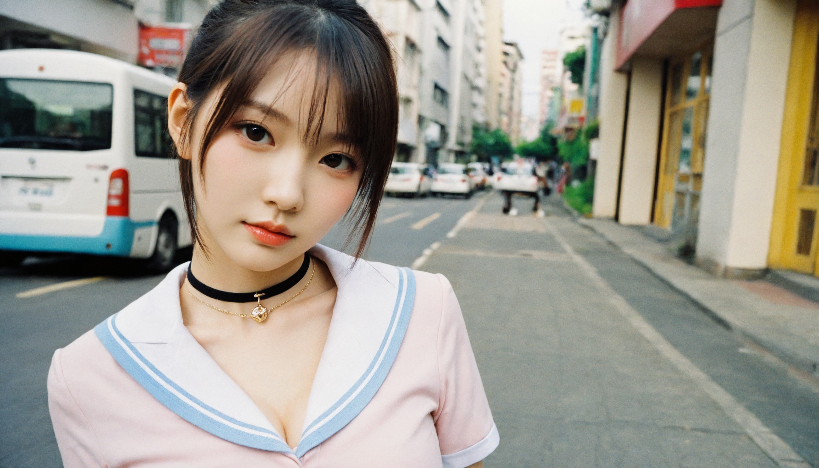 {"3": {"inputs": {"seed": 790971625463072, "steps": 64, "cfg": 5.89, "sampler_name": "dpmpp_2m", "scheduler": "karras", "denoise": 1.0, "model": ["27", 0], "positive": ["6", 0], "negative": ["7", 0], "latent_image": ["5", 0]}, "class_type": "KSampler"}, "4": {"inputs": {"ckpt_name": "helloworldxl.safetensors"}, "class_type": "CheckpointLoaderSimple"}, "5": {"inputs": {"width": 1344, "height": 768, "batch_size": 1}, "class_type": "EmptyLatentImage"}, "6": {"inputs": {"text": "27 year old girl, (russian:0.95), (taiwanese:1.06), (japanese:1.04), (blush:1.11), (detailed face:0.95), (temptress:1.00), (cute:1.00), (pale skin:0.98), (sexy lips:1.04), (seductive facial expression:1.05), (slim:1.02), (beautiful eyes:1.03), (eyelashes:1.01), (double eyelids:1.01), (seductive pose:1.02), (idol:1.12), (in a seductive pose:1.10), (large perky breasts:1.02), (cleavage:1.00), (thigh gap:1.00), (school uniform:1.03), choker, busy street, (film:1.06), (candid cinema:1.03), (natural looking skin:1.03), (detailed skin:1.08), (RAW:1.08), (portra:1.01), (textured skin:1.05), (skin fuzz:1.06), (soft lighting:1.07)", "clip": ["27", 1]}, "class_type": "CLIPTextEncode"}, "7": {"inputs": {"text": "(bad hands:1.13), (worst quality:1.13), (twisted:1.09), (low resolution:1.07), (watermark:1.12), (distorted:1.10), (open mouth:1.11)", "clip": ["27", 1]}, "class_type": "CLIPTextEncode"}, "8": {"inputs": {"samples": ["3", 0], "vae": ["4", 2]}, "class_type": "VAEDecode"}, "25": {"inputs": {"lora_name": "nudify_xl.safetensors", "strength_model": 0.01, "strength_clip": 0.26, "model": ["4", 0], "clip": ["4", 1]}, "class_type": "LoraLoader"}, "26": {"inputs": {"lora_name": "shirtlift_SDXL_v2.safetensors", "strength_model": 0.14, "strength_clip": 0.01, "model": ["25", 0], "clip": ["25", 1]}, "class_type": "LoraLoader"}, "27": {"inputs": {"lora_name": "PerfectEyesXL.safetensors", "strength_model": 0.18, "strength_clip": 0.05, "model": ["26", 0], "clip": ["26", 1]}, "class_type": "LoraLoader"}, "30": {"inputs": {"model_name": "4x_NMKD-Superscale-SP_178000_G.pth"}, "class_type": "UpscaleModelLoader"}, "31": {"inputs": {"upscale_model": ["30", 0], "image": ["8", 0]}, "class_type": "ImageUpscaleWithModel"}, "32": {"inputs": {"upscale_method": "lanczos", "scale_by": 0.5, "image": ["31", 0]}, "class_type": "ImageScaleBy"}, "33": {"inputs": {"pixels": ["32", 0], "vae": ["4", 2]}, "class_type": "VAEEncode"}, "34": {"inputs": {"seed": 790971625463072, "steps": 64, "cfg": 5.89, "sampler_name": "dpmpp_2m", "scheduler": "karras", "denoise": 0.3, "model": ["27", 0], "positive": ["6", 0], "negative": ["7", 0], "latent_image": ["33", 0]}, "class_type": "KSampler"}, "36": {"inputs": {"samples": ["34", 0], "vae": ["4", 2]}, "class_type": "VAEDecode"}, "39": {"inputs": {"filename_prefix": "comfyapi-1716029169945", "images": ["36", 0]}, "class_type": "SaveImage"}}