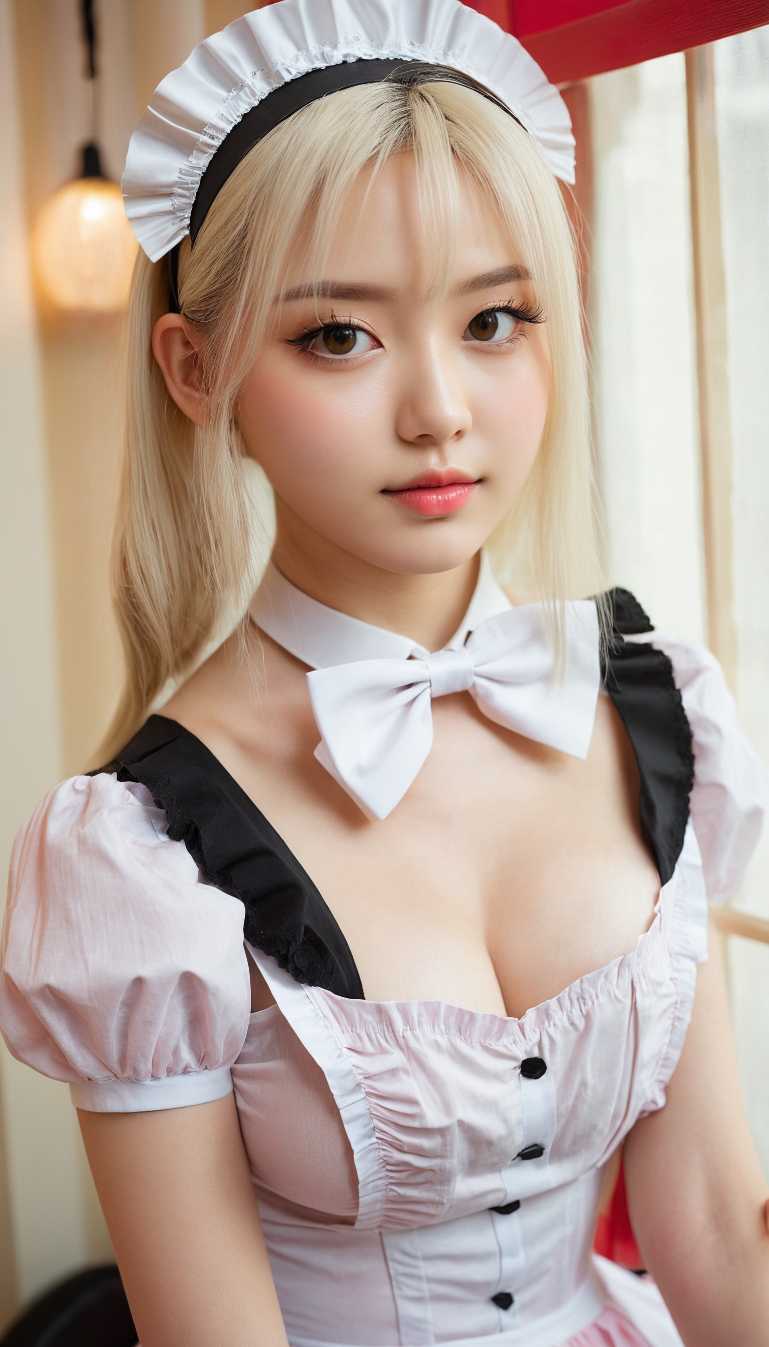 {"3": {"inputs": {"seed": 600825143443950, "steps": 64, "cfg": 7.53, "sampler_name": "dpmpp_2m", "scheduler": "karras", "denoise": 1.0, "model": ["27", 0], "positive": ["6", 0], "negative": ["7", 0], "latent_image": ["5", 0]}, "class_type": "KSampler"}, "4": {"inputs": {"ckpt_name": "juggernautxl.safetensors"}, "class_type": "CheckpointLoaderSimple"}, "5": {"inputs": {"width": 768, "height": 1344, "batch_size": 1}, "class_type": "EmptyLatentImage"}, "6": {"inputs": {"text": "23 year old girl, (eyelashes:1.03), (seductive pose:0.96), (cute:0.95), (double eyelids:1.10), (slim:1.09), (blush:1.05), (sexy lips:1.10), (idol:1.02), (beautiful eyes:1.07), (temptress:1.12), (seductive facial expression:1.14), (pale skin:1.06), (on all fours:1.02), (spreading ass cheeks:0.99), (from behind:1.07), (backboob:1.02), in a (skimpy maid costume:0.97) working at a maid cafe, choker, bowtie, headband, pleated skirt, (RAW:1.01), (textured skin:1.06), (film:1.09), (detailed skin:1.03), (portra:1.06), (natural looking skin:1.02), (skin fuzz:1.09), (soft lighting:1.06), (candid cinema:1.03)", "clip": ["27", 1]}, "class_type": "CLIPTextEncode"}, "7": {"inputs": {"text": "(low resolution:1.13), (open mouth:1.14), (twisted:1.13), (watermark:1.11), (bad hands:1.10), (worst quality:1.05), (distorted:1.08)", "clip": ["27", 1]}, "class_type": "CLIPTextEncode"}, "8": {"inputs": {"samples": ["3", 0], "vae": ["4", 2]}, "class_type": "VAEDecode"}, "25": {"inputs": {"lora_name": "nudify_xl.safetensors", "strength_model": 0.36, "strength_clip": 0.2, "model": ["4", 0], "clip": ["4", 1]}, "class_type": "LoraLoader"}, "26": {"inputs": {"lora_name": "shirtlift_SDXL_v2.safetensors", "strength_model": 0.02, "strength_clip": 0.02, "model": ["25", 0], "clip": ["25", 1]}, "class_type": "LoraLoader"}, "27": {"inputs": {"lora_name": "PerfectEyesXL.safetensors", "strength_model": 0.13, "strength_clip": 0.17, "model": ["26", 0], "clip": ["26", 1]}, "class_type": "LoraLoader"}, "30": {"inputs": {"model_name": "4x_NMKD-Superscale-SP_178000_G.pth"}, "class_type": "UpscaleModelLoader"}, "31": {"inputs": {"upscale_model": ["30", 0], "image": ["8", 0]}, "class_type": "ImageUpscaleWithModel"}, "32": {"inputs": {"upscale_method": "lanczos", "scale_by": 0.5, "image": ["31", 0]}, "class_type": "ImageScaleBy"}, "33": {"inputs": {"pixels": ["32", 0], "vae": ["4", 2]}, "class_type": "VAEEncode"}, "34": {"inputs": {"seed": 600825143443950, "steps": 64, "cfg": 7.53, "sampler_name": "dpmpp_2m", "scheduler": "karras", "denoise": 0.3, "model": ["27", 0], "positive": ["6", 0], "negative": ["7", 0], "latent_image": ["33", 0]}, "class_type": "KSampler"}, "36": {"inputs": {"samples": ["34", 0], "vae": ["4", 2]}, "class_type": "VAEDecode"}, "39": {"inputs": {"filename_prefix": "comfyapi-1724214335144", "images": ["36", 0]}, "class_type": "SaveImage"}}