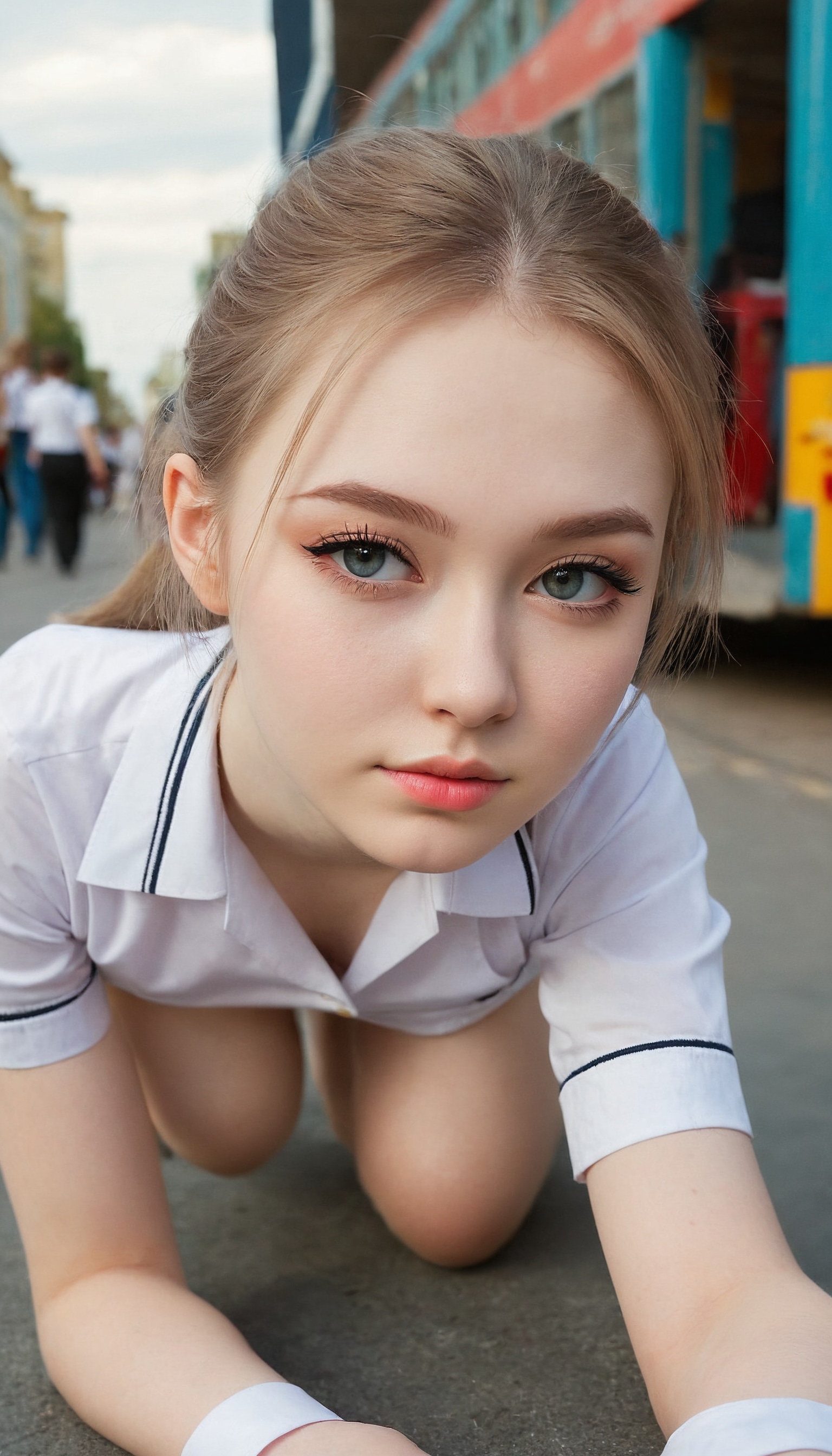 {"3": {"inputs": {"seed": 541700701809538, "steps": 32, "cfg": 5.97, "sampler_name": "dpmpp_2m", "scheduler": "karras", "denoise": 1.0, "model": ["27", 0], "positive": ["6", 0], "negative": ["7", 0], "latent_image": ["5", 0]}, "class_type": "KSampler"}, "4": {"inputs": {"ckpt_name": "juggernautXL_v8Rundiffusion.safetensors"}, "class_type": "CheckpointLoaderSimple"}, "5": {"inputs": {"width": 768, "height": 1344, "batch_size": 1}, "class_type": "EmptyLatentImage"}, "6": {"inputs": {"text": "20 year old girl, (russian:1.02), (cute:1.07), (idol:1.02), (double eyelids:1.06), (detailed face:1.07), (seductive facial expression:0.95), (pale skin:1.08), (sexy lips:0.95), (eyelashes:0.98), (blush:1.04), (beautiful eyes:1.08), (slim:1.10), (temptress:1.04), (seductive pose:1.08), (on all fours:1.10), (spreading ass cheeks:1.06), (from behind:1.12), (backboob:1.13), (school uniform:1.12), choker, busy street, (detailed skin:1.02), (RAW:1.02), (candid cinema:1.00), (film:1.07), (soft lighting:1.03), (natural looking skin:1.08), (textured skin:1.01), (skin fuzz:1.05), (portra:1.02)", "clip": ["27", 1]}, "class_type": "CLIPTextEncode"}, "7": {"inputs": {"text": "(bad hands:1.13), (worst quality:1.06), (low resolution:1.10), (open mouth:1.09), (watermark:1.11), (twisted:1.10), (distorted:1.13)", "clip": ["27", 1]}, "class_type": "CLIPTextEncode"}, "8": {"inputs": {"samples": ["3", 0], "vae": ["4", 2]}, "class_type": "VAEDecode"}, "25": {"inputs": {"lora_name": "nudify_xl.safetensors", "strength_model": 0.39, "strength_clip": 0.01, "model": ["4", 0], "clip": ["4", 1]}, "class_type": "LoraLoader"}, "26": {"inputs": {"lora_name": "shirtlift_SDXL_v2.safetensors", "strength_model": 0.08, "strength_clip": 0.13, "model": ["25", 0], "clip": ["25", 1]}, "class_type": "LoraLoader"}, "27": {"inputs": {"lora_name": "PerfectEyesXL.safetensors", "strength_model": 0.03, "strength_clip": 0.08, "model": ["26", 0], "clip": ["26", 1]}, "class_type": "LoraLoader"}, "30": {"inputs": {"model_name": "4x_NMKD-Superscale-SP_178000_G.pth"}, "class_type": "UpscaleModelLoader"}, "31": {"inputs": {"upscale_model": ["30", 0], "image": ["8", 0]}, "class_type": "ImageUpscaleWithModel"}, "32": {"inputs": {"upscale_method": "lanczos", "scale_by": 0.5, "image": ["31", 0]}, "class_type": "ImageScaleBy"}, "33": {"inputs": {"pixels": ["32", 0], "vae": ["4", 2]}, "class_type": "VAEEncode"}, "34": {"inputs": {"seed": 541700701809538, "steps": 32, "cfg": 5.97, "sampler_name": "dpmpp_2m", "scheduler": "karras", "denoise": 0.3, "model": ["27", 0], "positive": ["6", 0], "negative": ["7", 0], "latent_image": ["33", 0]}, "class_type": "KSampler"}, "36": {"inputs": {"samples": ["34", 0], "vae": ["4", 2]}, "class_type": "VAEDecode"}, "39": {"inputs": {"filename_prefix": "comfyapi-1707578651242", "images": ["36", 0]}, "class_type": "SaveImage"}}