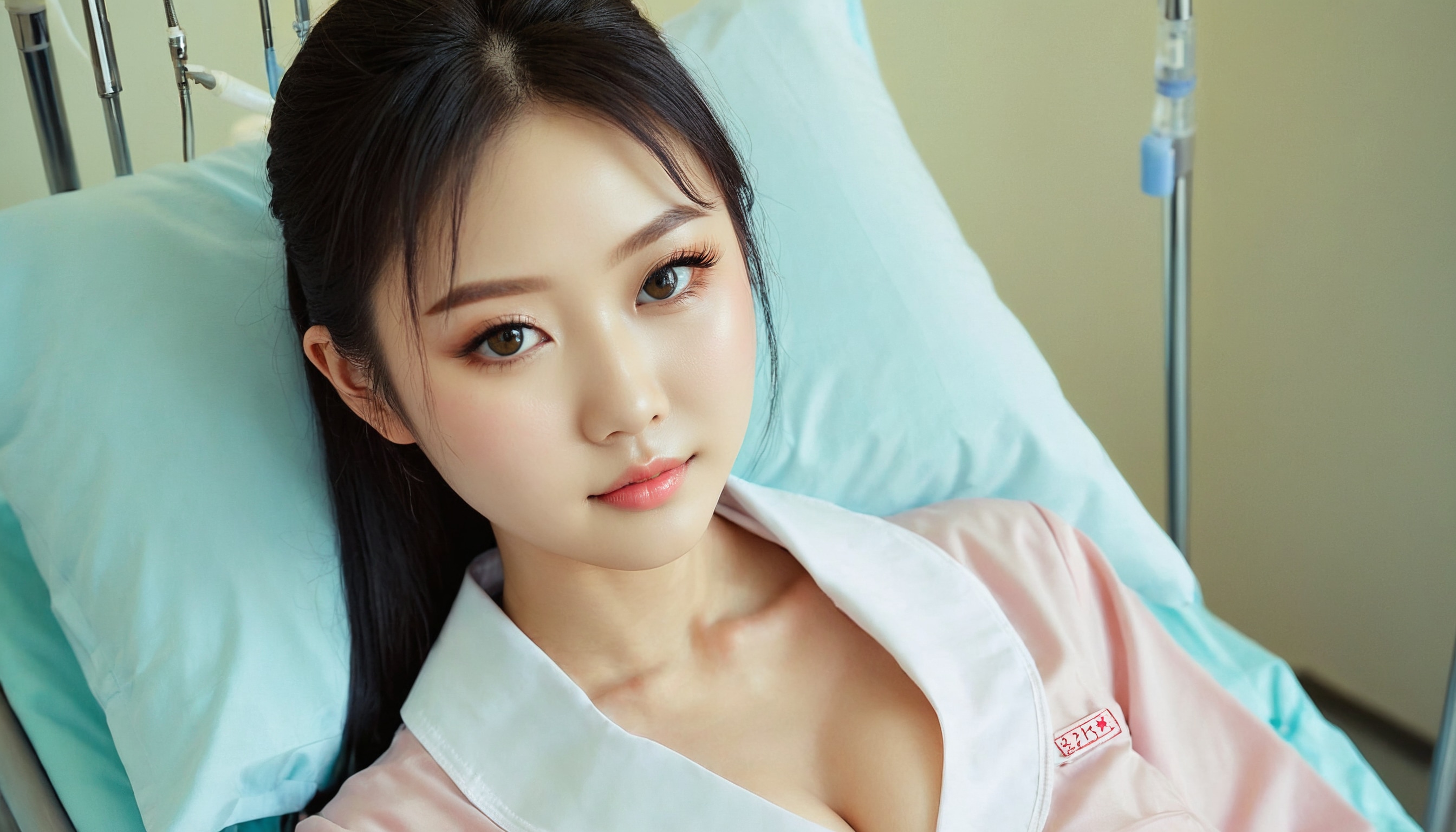 {"3": {"inputs": {"seed": 288556399925416, "steps": 32, "cfg": 7.59, "sampler_name": "dpmpp_2m", "scheduler": "karras", "denoise": 1.0, "model": ["27", 0], "positive": ["6", 0], "negative": ["7", 0], "latent_image": ["5", 0]}, "class_type": "KSampler"}, "4": {"inputs": {"ckpt_name": "juggernautxl.safetensors"}, "class_type": "CheckpointLoaderSimple"}, "5": {"inputs": {"width": 1344, "height": 768, "batch_size": 1}, "class_type": "EmptyLatentImage"}, "6": {"inputs": {"text": "25 year old girl, (chinese:0.95), (ukrainian:0.97), (idol:1.05), (eyelashes:1.01), (cute:0.97), (seductive pose:1.11), (pale skin:1.09), (temptress:1.04), (blush:1.13), (slim:1.13), (double eyelids:1.09), (beautiful eyes:1.12), (seductive facial expression:1.06), (detailed face:1.03), (sexy lips:1.05), (in a seductive pose:1.06), (large perky breasts:0.99), (cleavage:1.02), (thigh gap:0.98), (nurse in uniform:1.03) working in a hospital ward, (candid cinema:1.00), (RAW:1.02), (soft lighting:1.06), (textured skin:1.09), (film:1.07), (portra:1.04), (skin fuzz:1.05), (detailed skin:1.08), (natural looking skin:1.00)", "clip": ["27", 1]}, "class_type": "CLIPTextEncode"}, "7": {"inputs": {"text": "(bad hands:1.08), (worst quality:1.12), (distorted:1.07), (low resolution:1.06), (watermark:1.05), (open mouth:1.13), (twisted:1.13)", "clip": ["27", 1]}, "class_type": "CLIPTextEncode"}, "8": {"inputs": {"samples": ["3", 0], "vae": ["4", 2]}, "class_type": "VAEDecode"}, "25": {"inputs": {"lora_name": "nudify_xl.safetensors", "strength_model": 0.08, "strength_clip": 0.29, "model": ["4", 0], "clip": ["4", 1]}, "class_type": "LoraLoader"}, "26": {"inputs": {"lora_name": "shirtlift_SDXL_v2.safetensors", "strength_model": 0.04, "strength_clip": 0.13, "model": ["25", 0], "clip": ["25", 1]}, "class_type": "LoraLoader"}, "27": {"inputs": {"lora_name": "PerfectEyesXL.safetensors", "strength_model": 0.19, "strength_clip": 0.07, "model": ["26", 0], "clip": ["26", 1]}, "class_type": "LoraLoader"}, "30": {"inputs": {"model_name": "4x_NMKD-Superscale-SP_178000_G.pth"}, "class_type": "UpscaleModelLoader"}, "31": {"inputs": {"upscale_model": ["30", 0], "image": ["8", 0]}, "class_type": "ImageUpscaleWithModel"}, "32": {"inputs": {"upscale_method": "lanczos", "scale_by": 0.5, "image": ["31", 0]}, "class_type": "ImageScaleBy"}, "33": {"inputs": {"pixels": ["32", 0], "vae": ["4", 2]}, "class_type": "VAEEncode"}, "34": {"inputs": {"seed": 288556399925416, "steps": 32, "cfg": 7.59, "sampler_name": "dpmpp_2m", "scheduler": "karras", "denoise": 0.3, "model": ["27", 0], "positive": ["6", 0], "negative": ["7", 0], "latent_image": ["33", 0]}, "class_type": "KSampler"}, "36": {"inputs": {"samples": ["34", 0], "vae": ["4", 2]}, "class_type": "VAEDecode"}, "39": {"inputs": {"filename_prefix": "comfyapi-1723637916943", "images": ["36", 0]}, "class_type": "SaveImage"}}