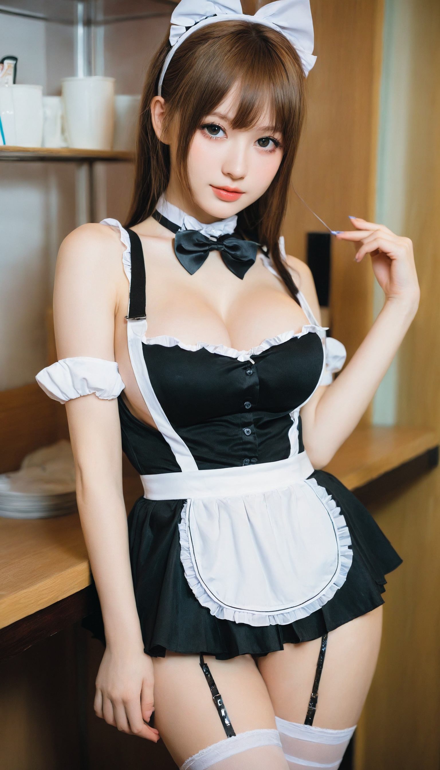 {"3": {"inputs": {"seed": 924773535351416, "steps": 32, "cfg": 5.11, "sampler_name": "dpmpp_2m", "scheduler": "karras", "denoise": 1.0, "model": ["27", 0], "positive": ["6", 0], "negative": ["7", 0], "latent_image": ["5", 0]}, "class_type": "KSampler"}, "4": {"inputs": {"ckpt_name": "helloworldxl.safetensors"}, "class_type": "CheckpointLoaderSimple"}, "5": {"inputs": {"width": 768, "height": 1344, "batch_size": 1}, "class_type": "EmptyLatentImage"}, "6": {"inputs": {"text": "20 year old girl, (ukrainian:0.98), (beautiful eyes:0.97), (idol:1.12), (slim:1.01), (seductive pose:0.97), (double eyelids:1.06), (pale skin:1.08), (cute:0.97), (detailed face:0.98), (blush:1.04), (seductive facial expression:1.02), (temptress:1.06), (sexy lips:1.05), (in a seductive pose:1.07), (large perky breasts:0.97), (cleavage:0.98), (thigh gap:1.06), in a (skimpy maid costume:1.13) working at a maid cafe, choker, bowtie, headband, pleated skirt, (natural looking skin:1.05), (skin fuzz:1.09), (RAW:1.01), (portra:1.02), (detailed skin:1.07), (textured skin:1.02), (film:1.00), (candid cinema:1.00), (soft lighting:1.06)", "clip": ["27", 1]}, "class_type": "CLIPTextEncode"}, "7": {"inputs": {"text": "(worst quality:1.09), (distorted:1.08), (bad hands:1.06), (twisted:1.09), (open mouth:1.09), (low resolution:1.09), (watermark:1.06)", "clip": ["27", 1]}, "class_type": "CLIPTextEncode"}, "8": {"inputs": {"samples": ["3", 0], "vae": ["4", 2]}, "class_type": "VAEDecode"}, "25": {"inputs": {"lora_name": "nudify_xl.safetensors", "strength_model": 0.16, "strength_clip": 0.07, "model": ["4", 0], "clip": ["4", 1]}, "class_type": "LoraLoader"}, "26": {"inputs": {"lora_name": "shirtlift_SDXL_v2.safetensors", "strength_model": 0.0, "strength_clip": 0.04, "model": ["25", 0], "clip": ["25", 1]}, "class_type": "LoraLoader"}, "27": {"inputs": {"lora_name": "PerfectEyesXL.safetensors", "strength_model": 0.06, "strength_clip": 0.05, "model": ["26", 0], "clip": ["26", 1]}, "class_type": "LoraLoader"}, "30": {"inputs": {"model_name": "4x_NMKD-Superscale-SP_178000_G.pth"}, "class_type": "UpscaleModelLoader"}, "31": {"inputs": {"upscale_model": ["30", 0], "image": ["8", 0]}, "class_type": "ImageUpscaleWithModel"}, "32": {"inputs": {"upscale_method": "lanczos", "scale_by": 0.5, "image": ["31", 0]}, "class_type": "ImageScaleBy"}, "33": {"inputs": {"pixels": ["32", 0], "vae": ["4", 2]}, "class_type": "VAEEncode"}, "34": {"inputs": {"seed": 924773535351416, "steps": 32, "cfg": 5.11, "sampler_name": "dpmpp_2m", "scheduler": "karras", "denoise": 0.3, "model": ["27", 0], "positive": ["6", 0], "negative": ["7", 0], "latent_image": ["33", 0]}, "class_type": "KSampler"}, "36": {"inputs": {"samples": ["34", 0], "vae": ["4", 2]}, "class_type": "VAEDecode"}, "39": {"inputs": {"filename_prefix": "comfyapi-1714221838883", "images": ["36", 0]}, "class_type": "SaveImage"}}