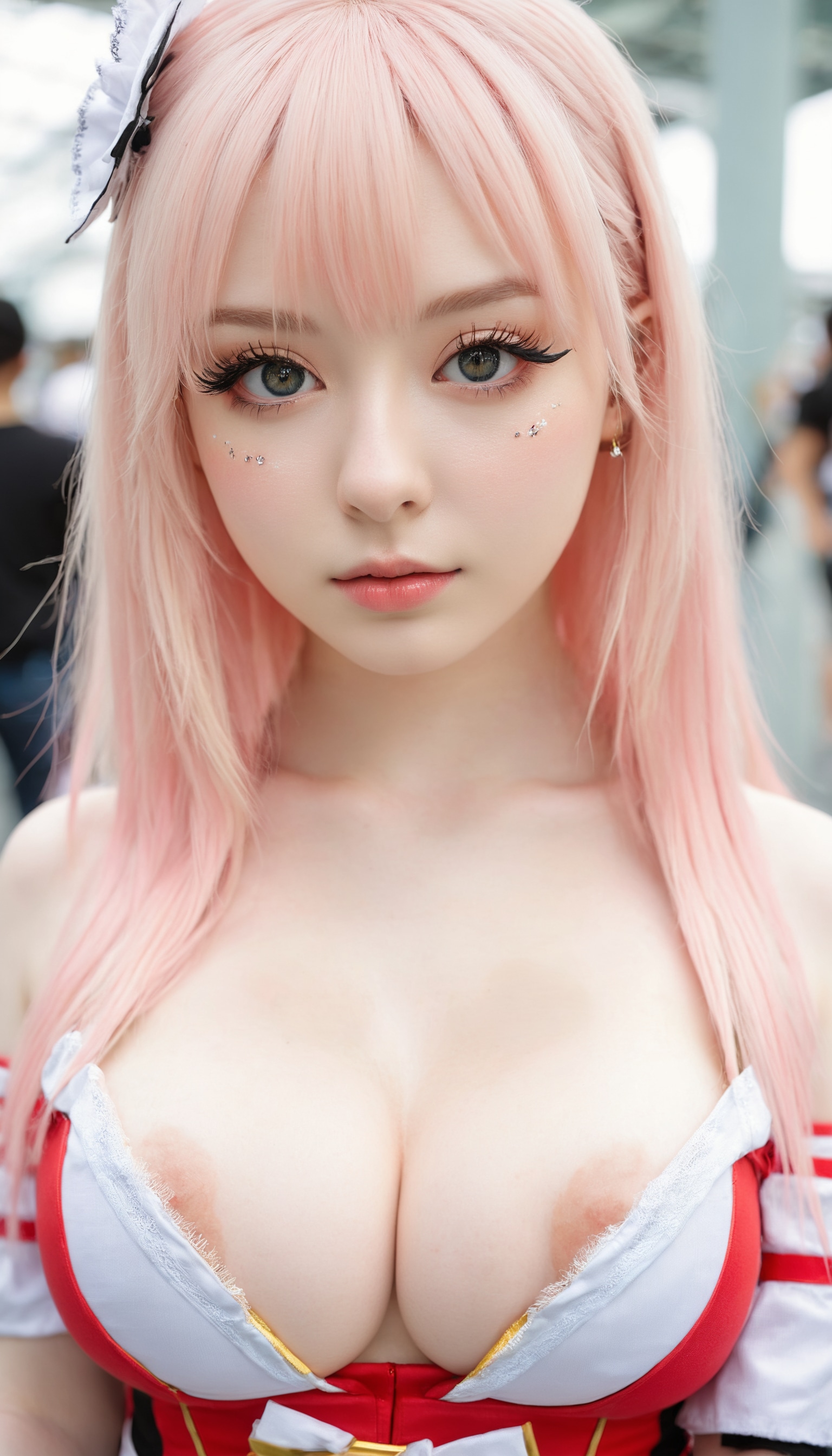 {"3": {"inputs": {"seed": 338528560284394, "steps": 64, "cfg": 6.48, "sampler_name": "dpmpp_2m", "scheduler": "karras", "denoise": 1.0, "model": ["27", 0], "positive": ["6", 0], "negative": ["7", 0], "latent_image": ["5", 0]}, "class_type": "KSampler"}, "4": {"inputs": {"ckpt_name": "juggernautxl.safetensors"}, "class_type": "CheckpointLoaderSimple"}, "5": {"inputs": {"width": 768, "height": 1344, "batch_size": 1}, "class_type": "EmptyLatentImage"}, "6": {"inputs": {"text": "19 year old girl, (pale skin:1.10), (detailed face:1.02), (eyelashes:1.10), (cute:0.98), (blush:1.10), (temptress:0.96), (seductive facial expression:0.95), (double eyelids:1.14), (beautiful eyes:1.00), (slim:1.01), (seductive pose:1.08), (idol:1.06), (sexy lips:1.05), (in a seductive pose:1.03), (large perky breasts:1.13), (cleavage:1.05), (thigh gap:1.01), (in a cosplay:1.10) at comiket posing for camera, (textured skin:1.06), (candid cinema:1.04), (film:1.03), (skin fuzz:1.07), (RAW:1.05), (natural looking skin:1.03), (soft lighting:1.03), (detailed skin:1.00), (portra:1.06)", "clip": ["27", 1]}, "class_type": "CLIPTextEncode"}, "7": {"inputs": {"text": "(watermark:1.11), (worst quality:1.05), (twisted:1.06), (open mouth:1.07), (low resolution:1.10), (distorted:1.06), (bad hands:1.07)", "clip": ["27", 1]}, "class_type": "CLIPTextEncode"}, "8": {"inputs": {"samples": ["3", 0], "vae": ["4", 2]}, "class_type": "VAEDecode"}, "25": {"inputs": {"lora_name": "nudify_xl.safetensors", "strength_model": 0.21, "strength_clip": 0.05, "model": ["4", 0], "clip": ["4", 1]}, "class_type": "LoraLoader"}, "26": {"inputs": {"lora_name": "shirtlift_SDXL_v2.safetensors", "strength_model": 0.14, "strength_clip": 0.01, "model": ["25", 0], "clip": ["25", 1]}, "class_type": "LoraLoader"}, "27": {"inputs": {"lora_name": "PerfectEyesXL.safetensors", "strength_model": 0.18, "strength_clip": 0.06, "model": ["26", 0], "clip": ["26", 1]}, "class_type": "LoraLoader"}, "30": {"inputs": {"model_name": "4x_NMKD-Superscale-SP_178000_G.pth"}, "class_type": "UpscaleModelLoader"}, "31": {"inputs": {"upscale_model": ["30", 0], "image": ["8", 0]}, "class_type": "ImageUpscaleWithModel"}, "32": {"inputs": {"upscale_method": "lanczos", "scale_by": 0.5, "image": ["31", 0]}, "class_type": "ImageScaleBy"}, "33": {"inputs": {"pixels": ["32", 0], "vae": ["4", 2]}, "class_type": "VAEEncode"}, "34": {"inputs": {"seed": 338528560284394, "steps": 64, "cfg": 6.48, "sampler_name": "dpmpp_2m", "scheduler": "karras", "denoise": 0.3, "model": ["27", 0], "positive": ["6", 0], "negative": ["7", 0], "latent_image": ["33", 0]}, "class_type": "KSampler"}, "36": {"inputs": {"samples": ["34", 0], "vae": ["4", 2]}, "class_type": "VAEDecode"}, "39": {"inputs": {"filename_prefix": "comfyapi-1735218817368", "images": ["36", 0]}, "class_type": "SaveImage"}}
