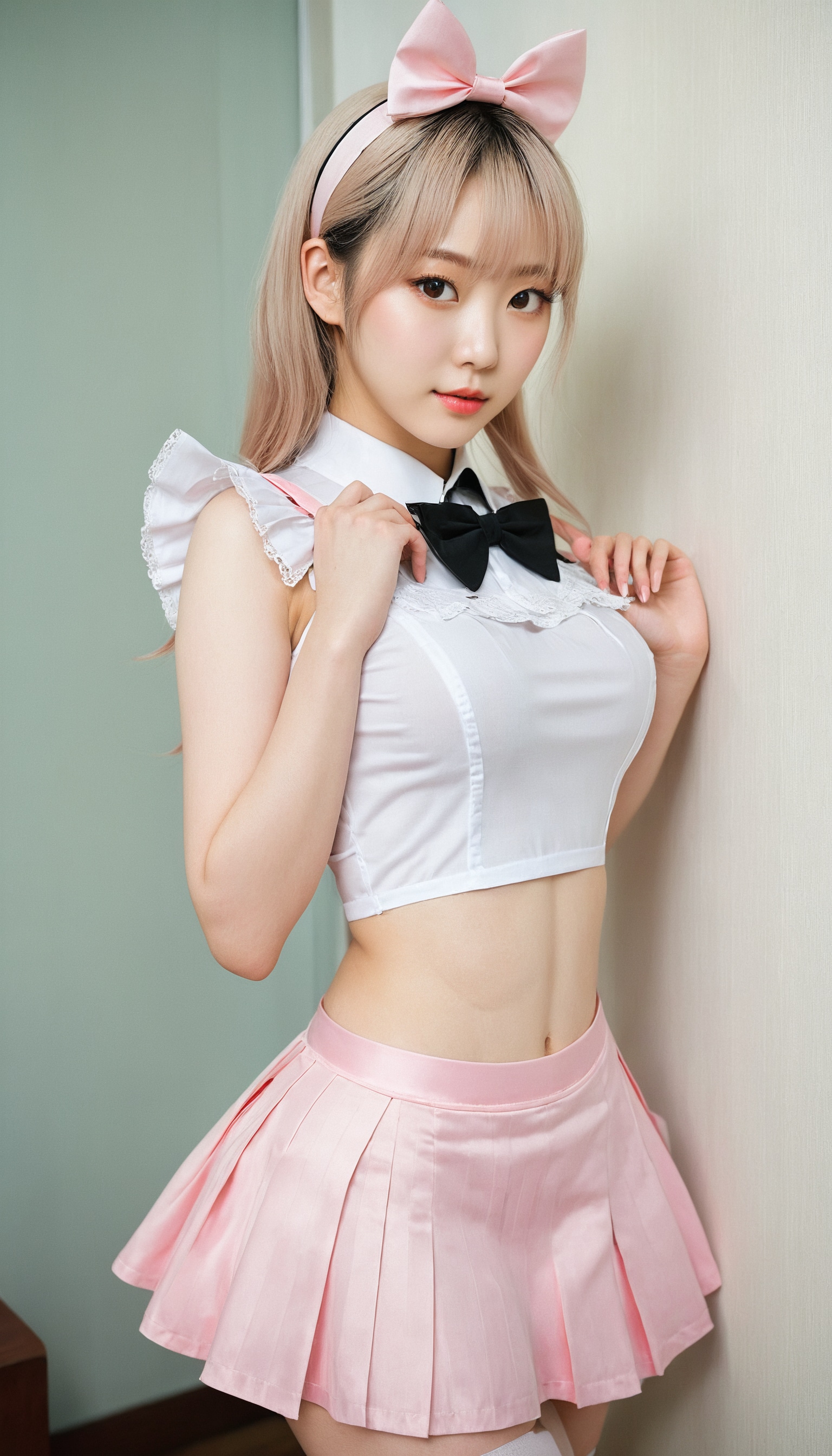 {"3": {"inputs": {"seed": 492376548849800, "steps": 32, "cfg": 6.24, "sampler_name": "dpmpp_2m", "scheduler": "karras", "denoise": 1.0, "model": ["27", 0], "positive": ["6", 0], "negative": ["7", 0], "latent_image": ["5", 0]}, "class_type": "KSampler"}, "4": {"inputs": {"ckpt_name": "juggernautxl.safetensors"}, "class_type": "CheckpointLoaderSimple"}, "5": {"inputs": {"width": 768, "height": 1344, "batch_size": 1}, "class_type": "EmptyLatentImage"}, "6": {"inputs": {"text": "18 year old girl, (irish:1.09), (korean:1.08), (sexy lips:0.96), (cute:1.05), (slim:1.09), (temptress:1.09), (blush:1.14), (seductive pose:0.97), (pale skin:1.11), (double eyelids:0.96), (idol:1.00), (beautiful eyes:1.12), (detailed face:1.13), (perky ass:0.97), (exposed ass:1.11), (looking back:1.14), (sexy ass:1.10), (thigh gap:0.98), in a (skimpy maid costume:1.04) working at a maid cafe, choker, bowtie, headband, pleated skirt, (detailed skin:1.02), (portra:1.08), (natural looking skin:1.08), (film:1.09), (textured skin:1.01), (RAW:1.09), (soft lighting:1.06), (candid cinema:1.02), (skin fuzz:1.00)", "clip": ["27", 1]}, "class_type": "CLIPTextEncode"}, "7": {"inputs": {"text": "(distorted:1.06), (watermark:1.12), (worst quality:1.09), (twisted:1.09), (low resolution:1.10), (open mouth:1.11), (bad hands:1.06)", "clip": ["27", 1]}, "class_type": "CLIPTextEncode"}, "8": {"inputs": {"samples": ["3", 0], "vae": ["4", 2]}, "class_type": "VAEDecode"}, "25": {"inputs": {"lora_name": "nudify_xl.safetensors", "strength_model": 0.21, "strength_clip": 0.13, "model": ["4", 0], "clip": ["4", 1]}, "class_type": "LoraLoader"}, "26": {"inputs": {"lora_name": "shirtlift_SDXL_v2.safetensors", "strength_model": 0.18, "strength_clip": 0.01, "model": ["25", 0], "clip": ["25", 1]}, "class_type": "LoraLoader"}, "27": {"inputs": {"lora_name": "PerfectEyesXL.safetensors", "strength_model": 0.02, "strength_clip": 0.0, "model": ["26", 0], "clip": ["26", 1]}, "class_type": "LoraLoader"}, "30": {"inputs": {"model_name": "4x_NMKD-Superscale-SP_178000_G.pth"}, "class_type": "UpscaleModelLoader"}, "31": {"inputs": {"upscale_model": ["30", 0], "image": ["8", 0]}, "class_type": "ImageUpscaleWithModel"}, "32": {"inputs": {"upscale_method": "lanczos", "scale_by": 0.5, "image": ["31", 0]}, "class_type": "ImageScaleBy"}, "33": {"inputs": {"pixels": ["32", 0], "vae": ["4", 2]}, "class_type": "VAEEncode"}, "34": {"inputs": {"seed": 492376548849800, "steps": 32, "cfg": 6.24, "sampler_name": "dpmpp_2m", "scheduler": "karras", "denoise": 0.3, "model": ["27", 0], "positive": ["6", 0], "negative": ["7", 0], "latent_image": ["33", 0]}, "class_type": "KSampler"}, "36": {"inputs": {"samples": ["34", 0], "vae": ["4", 2]}, "class_type": "VAEDecode"}, "39": {"inputs": {"filename_prefix": "comfyapi-1731349439745", "images": ["36", 0]}, "class_type": "SaveImage"}}