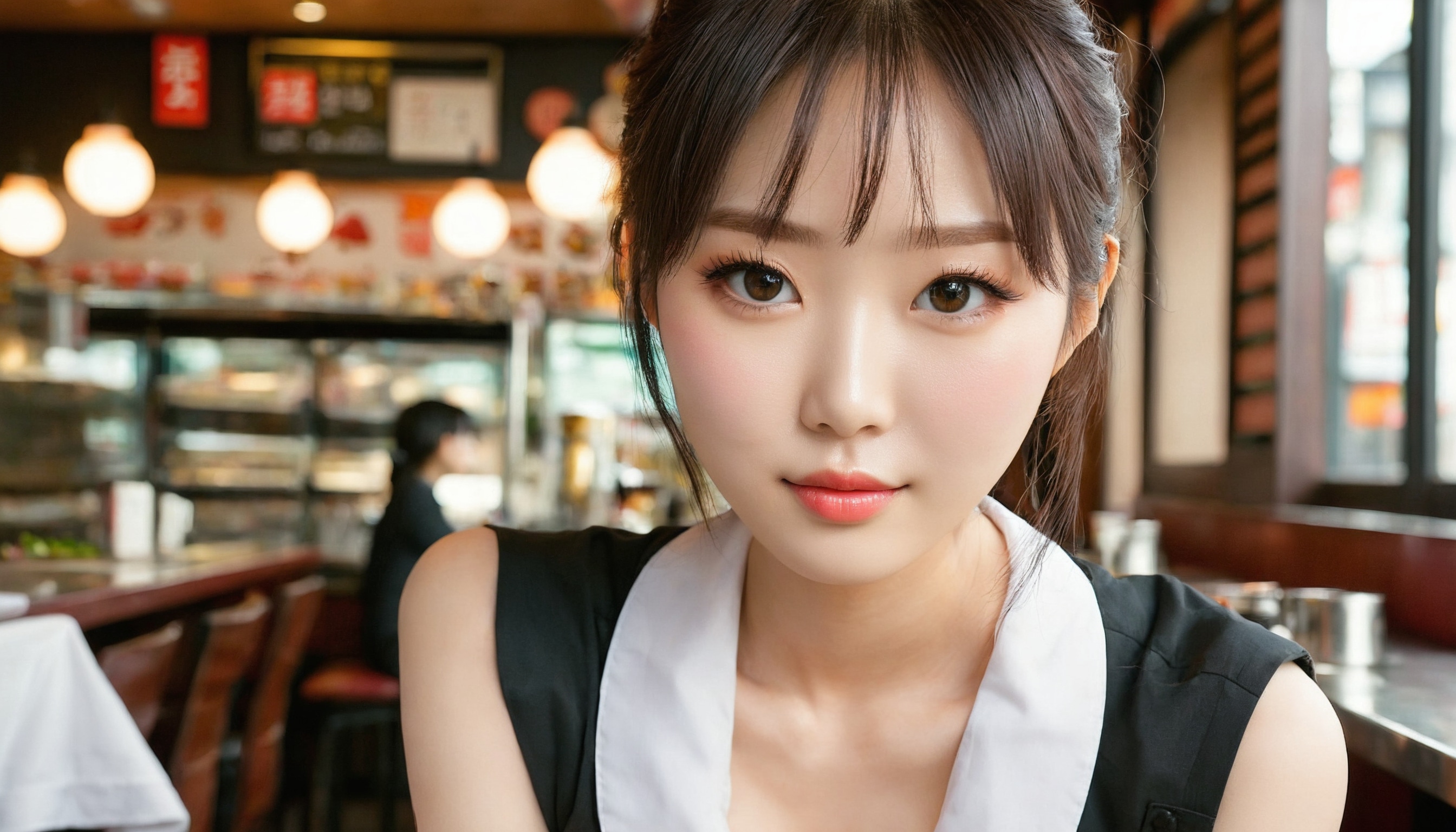 {"3": {"inputs": {"seed": 391917360235971, "steps": 64, "cfg": 5.74, "sampler_name": "dpmpp_2m", "scheduler": "karras", "denoise": 1.0, "model": ["27", 0], "positive": ["6", 0], "negative": ["7", 0], "latent_image": ["5", 0]}, "class_type": "KSampler"}, "4": {"inputs": {"ckpt_name": "juggernautxl.safetensors"}, "class_type": "CheckpointLoaderSimple"}, "5": {"inputs": {"width": 1344, "height": 768, "batch_size": 1}, "class_type": "EmptyLatentImage"}, "6": {"inputs": {"text": "27 year old girl, (korean:0.99), (japanese:1.11), (eyelashes:1.00), (slim:0.98), (cute:1.02), (detailed face:0.95), (idol:1.02), (sexy lips:1.08), (temptress:1.03), (seductive facial expression:0.96), (pale skin:0.99), (beautiful eyes:0.99), (blush:0.99), (seductive pose:1.13), (in a seductive pose:1.07), (large perky breasts:1.10), (cleavage:1.10), (thigh gap:0.97), (a waitress in uniform:1.03) working at a restaurant, (RAW:1.06), (detailed skin:1.05), (natural looking skin:1.07), (portra:1.02), (soft lighting:1.06), (film:1.00), (skin fuzz:1.03), (candid cinema:1.02), (textured skin:1.00)", "clip": ["27", 1]}, "class_type": "CLIPTextEncode"}, "7": {"inputs": {"text": "(watermark:1.09), (worst quality:1.10), (open mouth:1.09), (twisted:1.06), (distorted:1.11), (low resolution:1.05), (bad hands:1.14)", "clip": ["27", 1]}, "class_type": "CLIPTextEncode"}, "8": {"inputs": {"samples": ["3", 0], "vae": ["4", 2]}, "class_type": "VAEDecode"}, "25": {"inputs": {"lora_name": "nudify_xl.safetensors", "strength_model": 0.22, "strength_clip": 0.0, "model": ["4", 0], "clip": ["4", 1]}, "class_type": "LoraLoader"}, "26": {"inputs": {"lora_name": "shirtlift_SDXL_v2.safetensors", "strength_model": 0.16, "strength_clip": 0.14, "model": ["25", 0], "clip": ["25", 1]}, "class_type": "LoraLoader"}, "27": {"inputs": {"lora_name": "PerfectEyesXL.safetensors", "strength_model": 0.04, "strength_clip": 0.11, "model": ["26", 0], "clip": ["26", 1]}, "class_type": "LoraLoader"}, "30": {"inputs": {"model_name": "4x_NMKD-Superscale-SP_178000_G.pth"}, "class_type": "UpscaleModelLoader"}, "31": {"inputs": {"upscale_model": ["30", 0], "image": ["8", 0]}, "class_type": "ImageUpscaleWithModel"}, "32": {"inputs": {"upscale_method": "lanczos", "scale_by": 0.5, "image": ["31", 0]}, "class_type": "ImageScaleBy"}, "33": {"inputs": {"pixels": ["32", 0], "vae": ["4", 2]}, "class_type": "VAEEncode"}, "34": {"inputs": {"seed": 391917360235971, "steps": 64, "cfg": 5.74, "sampler_name": "dpmpp_2m", "scheduler": "karras", "denoise": 0.3, "model": ["27", 0], "positive": ["6", 0], "negative": ["7", 0], "latent_image": ["33", 0]}, "class_type": "KSampler"}, "36": {"inputs": {"samples": ["34", 0], "vae": ["4", 2]}, "class_type": "VAEDecode"}, "39": {"inputs": {"filename_prefix": "comfyapi-1717532177832", "images": ["36", 0]}, "class_type": "SaveImage"}}