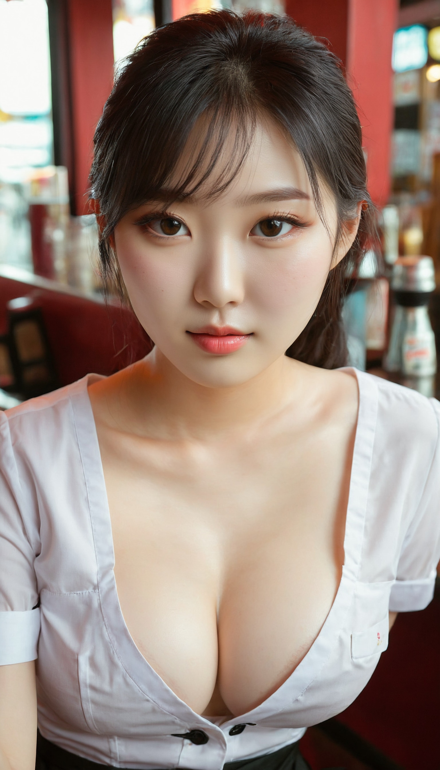 {"3": {"inputs": {"seed": 230497495033021, "steps": 32, "cfg": 6.13, "sampler_name": "dpmpp_2m", "scheduler": "karras", "denoise": 1.0, "model": ["27", 0], "positive": ["6", 0], "negative": ["7", 0], "latent_image": ["5", 0]}, "class_type": "KSampler"}, "4": {"inputs": {"ckpt_name": "juggernautxl.safetensors"}, "class_type": "CheckpointLoaderSimple"}, "5": {"inputs": {"width": 768, "height": 1344, "batch_size": 1}, "class_type": "EmptyLatentImage"}, "6": {"inputs": {"text": "21 year old girl, (korean:1.12), (temptress:1.06), (cute:0.95), (slim:1.06), (pale skin:0.95), (beautiful eyes:1.05), (seductive facial expression:1.01), (sexy lips:1.00), (idol:1.14), (eyelashes:0.97), (double eyelids:1.02), (detailed face:1.10), (in a seductive pose:1.04), (large perky breasts:1.08), (cleavage:1.07), (thigh gap:1.03), (a waitress in uniform:1.09) working at a restaurant, (RAW:1.01), (candid cinema:1.09), (textured skin:1.08), (skin fuzz:1.02), (film:1.00), (detailed skin:1.09), (natural looking skin:1.01), (portra:1.00)", "clip": ["27", 1]}, "class_type": "CLIPTextEncode"}, "7": {"inputs": {"text": "(bad hands:1.11), (watermark:1.13), (twisted:1.13), (low resolution:1.07), (distorted:1.13), (open mouth:1.13), (worst quality:1.06)", "clip": ["27", 1]}, "class_type": "CLIPTextEncode"}, "8": {"inputs": {"samples": ["3", 0], "vae": ["4", 2]}, "class_type": "VAEDecode"}, "25": {"inputs": {"lora_name": "nudify_xl.safetensors", "strength_model": 0.3, "strength_clip": 0.0, "model": ["4", 0], "clip": ["4", 1]}, "class_type": "LoraLoader"}, "26": {"inputs": {"lora_name": "shirtlift_SDXL_v2.safetensors", "strength_model": 0.14, "strength_clip": 0.02, "model": ["25", 0], "clip": ["25", 1]}, "class_type": "LoraLoader"}, "27": {"inputs": {"lora_name": "PerfectEyesXL.safetensors", "strength_model": 0.18, "strength_clip": 0.16, "model": ["26", 0], "clip": ["26", 1]}, "class_type": "LoraLoader"}, "30": {"inputs": {"model_name": "4x_NMKD-Superscale-SP_178000_G.pth"}, "class_type": "UpscaleModelLoader"}, "31": {"inputs": {"upscale_model": ["30", 0], "image": ["8", 0]}, "class_type": "ImageUpscaleWithModel"}, "32": {"inputs": {"upscale_method": "lanczos", "scale_by": 0.5, "image": ["31", 0]}, "class_type": "ImageScaleBy"}, "33": {"inputs": {"pixels": ["32", 0], "vae": ["4", 2]}, "class_type": "VAEEncode"}, "34": {"inputs": {"seed": 230497495033021, "steps": 32, "cfg": 6.13, "sampler_name": "dpmpp_2m", "scheduler": "karras", "denoise": 0.3, "model": ["27", 0], "positive": ["6", 0], "negative": ["7", 0], "latent_image": ["33", 0]}, "class_type": "KSampler"}, "36": {"inputs": {"samples": ["34", 0], "vae": ["4", 2]}, "class_type": "VAEDecode"}, "39": {"inputs": {"filename_prefix": "comfyapi-1714714155481", "images": ["36", 0]}, "class_type": "SaveImage"}}