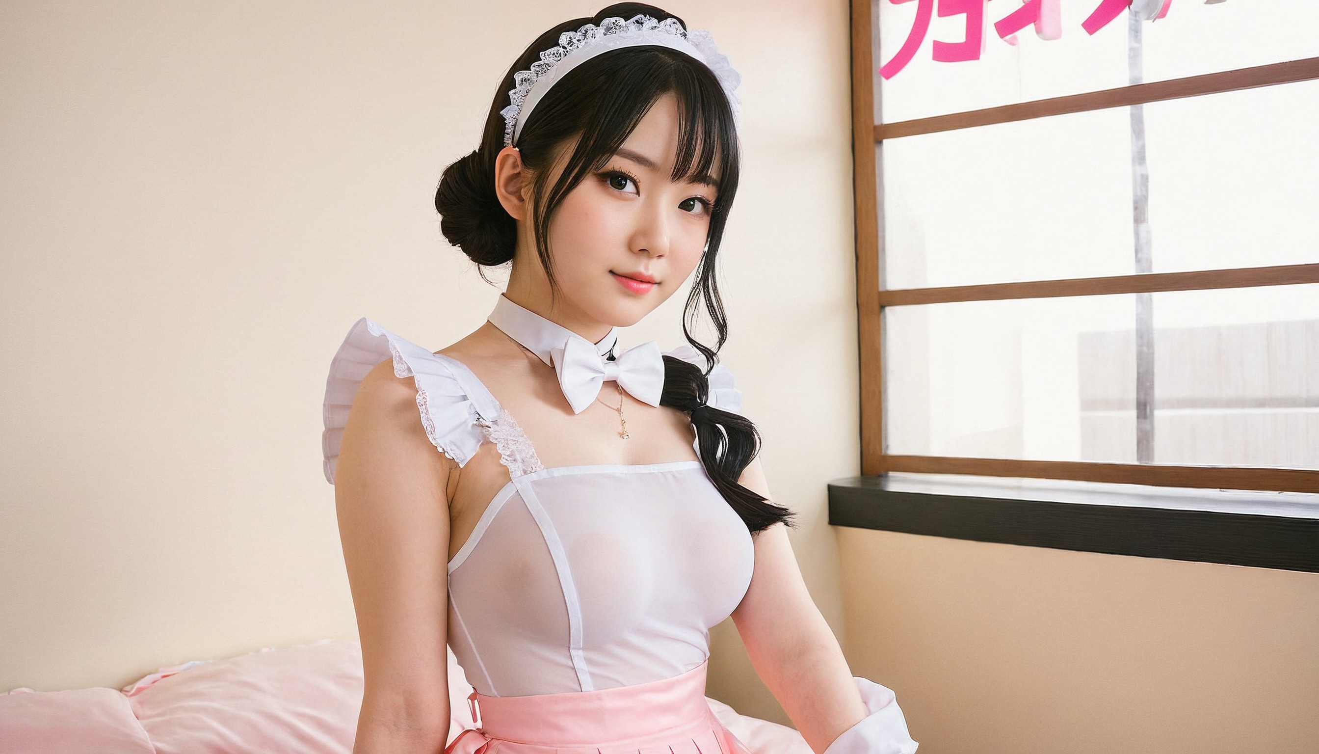 {"3": {"inputs": {"seed": 629535211093182, "steps": 32, "cfg": 7.62, "sampler_name": "dpmpp_2m", "scheduler": "karras", "denoise": 1.0, "model": ["27", 0], "positive": ["6", 0], "negative": ["7", 0], "latent_image": ["5", 0]}, "class_type": "KSampler"}, "4": {"inputs": {"ckpt_name": "juggernautXL_v8Rundiffusion.safetensors"}, "class_type": "CheckpointLoaderSimple"}, "5": {"inputs": {"width": 1344, "height": 768, "batch_size": 1}, "class_type": "EmptyLatentImage"}, "6": {"inputs": {"text": "27 year old girl, (japanese:1.12), (beautiful eyes:1.00), (double eyelids:0.97), (pale skin:1.13), (seductive facial expression:1.02), (sexy lips:1.02), (eyelashes:1.10), (cute:0.99), (blush:1.08), (slim:1.01), (seductive pose:1.05), (idol:1.05), (temptress:0.96), (perky ass:1.07), (exposed ass:1.14), (looking back:0.96), (sexy ass:1.13), (thigh gap:1.06), in a (skimpy maid costume:1.01) working at a maid cafe, choker, bowtie, headband, pleated skirt, (portra:1.03), (film:1.06), (skin fuzz:1.01), (detailed skin:1.09), (RAW:1.00), (textured skin:1.09), (natural looking skin:1.07), (soft lighting:1.06), (candid cinema:1.07)", "clip": ["27", 1]}, "class_type": "CLIPTextEncode"}, "7": {"inputs": {"text": "(low resolution:1.08), (worst quality:1.08), (twisted:1.12), (bad hands:1.13), (distorted:1.11), (watermark:1.13), (open mouth:1.13)", "clip": ["27", 1]}, "class_type": "CLIPTextEncode"}, "8": {"inputs": {"samples": ["3", 0], "vae": ["4", 2]}, "class_type": "VAEDecode"}, "25": {"inputs": {"lora_name": "nudify_xl.safetensors", "strength_model": 0.3, "strength_clip": 0.17, "model": ["4", 0], "clip": ["4", 1]}, "class_type": "LoraLoader"}, "26": {"inputs": {"lora_name": "shirtlift_SDXL_v2.safetensors", "strength_model": 0.13, "strength_clip": 0.05, "model": ["25", 0], "clip": ["25", 1]}, "class_type": "LoraLoader"}, "27": {"inputs": {"lora_name": "PerfectEyesXL.safetensors", "strength_model": 0.06, "strength_clip": 0.04, "model": ["26", 0], "clip": ["26", 1]}, "class_type": "LoraLoader"}, "30": {"inputs": {"model_name": "4x_NMKD-Superscale-SP_178000_G.pth"}, "class_type": "UpscaleModelLoader"}, "31": {"inputs": {"upscale_model": ["30", 0], "image": ["8", 0]}, "class_type": "ImageUpscaleWithModel"}, "32": {"inputs": {"upscale_method": "lanczos", "scale_by": 0.5, "image": ["31", 0]}, "class_type": "ImageScaleBy"}, "33": {"inputs": {"pixels": ["32", 0], "vae": ["4", 2]}, "class_type": "VAEEncode"}, "34": {"inputs": {"seed": 629535211093182, "steps": 32, "cfg": 7.62, "sampler_name": "dpmpp_2m", "scheduler": "karras", "denoise": 0.3, "model": ["27", 0], "positive": ["6", 0], "negative": ["7", 0], "latent_image": ["33", 0]}, "class_type": "KSampler"}, "36": {"inputs": {"samples": ["34", 0], "vae": ["4", 2]}, "class_type": "VAEDecode"}, "39": {"inputs": {"filename_prefix": "comfyapi-1707531990004", "images": ["36", 0]}, "class_type": "SaveImage"}}