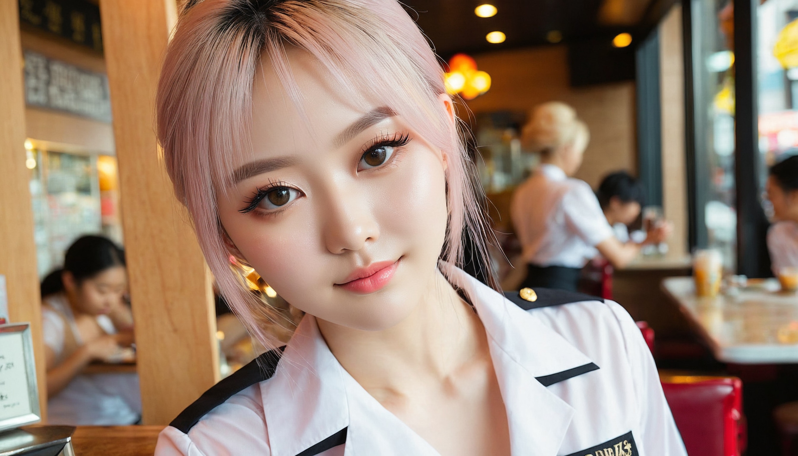 {"3": {"inputs": {"seed": 395158919696743, "steps": 64, "cfg": 7.6, "sampler_name": "dpmpp_2m", "scheduler": "karras", "denoise": 1.0, "model": ["27", 0], "positive": ["6", 0], "negative": ["7", 0], "latent_image": ["5", 0]}, "class_type": "KSampler"}, "4": {"inputs": {"ckpt_name": "juggernautxl.safetensors"}, "class_type": "CheckpointLoaderSimple"}, "5": {"inputs": {"width": 1344, "height": 768, "batch_size": 1}, "class_type": "EmptyLatentImage"}, "6": {"inputs": {"text": "28 year old girl, (eyelashes:1.09), (double eyelids:0.98), (idol:1.06), (detailed face:1.00), (temptress:1.14), (seductive pose:1.01), (blush:1.06), (pale skin:1.12), (slim:1.00), (seductive facial expression:1.01), (beautiful eyes:1.01), (cute:1.05), (sexy lips:1.01), (perky ass:1.05), (exposed ass:0.98), (looking back:1.09), (sexy ass:1.06), (thigh gap:1.11), (a waitress in uniform:1.14) working at a restaurant, (detailed skin:1.06), (RAW:1.09), (skin fuzz:1.05), (textured skin:1.03), (film:1.02), (portra:1.06), (candid cinema:1.01), (natural looking skin:1.08), (soft lighting:1.07)", "clip": ["27", 1]}, "class_type": "CLIPTextEncode"}, "7": {"inputs": {"text": "(twisted:1.06), (low resolution:1.08), (watermark:1.07), (distorted:1.06), (open mouth:1.12), (worst quality:1.12), (bad hands:1.05)", "clip": ["27", 1]}, "class_type": "CLIPTextEncode"}, "8": {"inputs": {"samples": ["3", 0], "vae": ["4", 2]}, "class_type": "VAEDecode"}, "25": {"inputs": {"lora_name": "nudify_xl.safetensors", "strength_model": 0.34, "strength_clip": 0.21, "model": ["4", 0], "clip": ["4", 1]}, "class_type": "LoraLoader"}, "26": {"inputs": {"lora_name": "shirtlift_SDXL_v2.safetensors", "strength_model": 0.0, "strength_clip": 0.06, "model": ["25", 0], "clip": ["25", 1]}, "class_type": "LoraLoader"}, "27": {"inputs": {"lora_name": "PerfectEyesXL.safetensors", "strength_model": 0.05, "strength_clip": 0.17, "model": ["26", 0], "clip": ["26", 1]}, "class_type": "LoraLoader"}, "30": {"inputs": {"model_name": "4x_NMKD-Superscale-SP_178000_G.pth"}, "class_type": "UpscaleModelLoader"}, "31": {"inputs": {"upscale_model": ["30", 0], "image": ["8", 0]}, "class_type": "ImageUpscaleWithModel"}, "32": {"inputs": {"upscale_method": "lanczos", "scale_by": 0.5, "image": ["31", 0]}, "class_type": "ImageScaleBy"}, "33": {"inputs": {"pixels": ["32", 0], "vae": ["4", 2]}, "class_type": "VAEEncode"}, "34": {"inputs": {"seed": 395158919696743, "steps": 64, "cfg": 7.6, "sampler_name": "dpmpp_2m", "scheduler": "karras", "denoise": 0.3, "model": ["27", 0], "positive": ["6", 0], "negative": ["7", 0], "latent_image": ["33", 0]}, "class_type": "KSampler"}, "36": {"inputs": {"samples": ["34", 0], "vae": ["4", 2]}, "class_type": "VAEDecode"}, "39": {"inputs": {"filename_prefix": "comfyapi-1732807077548", "images": ["36", 0]}, "class_type": "SaveImage"}}