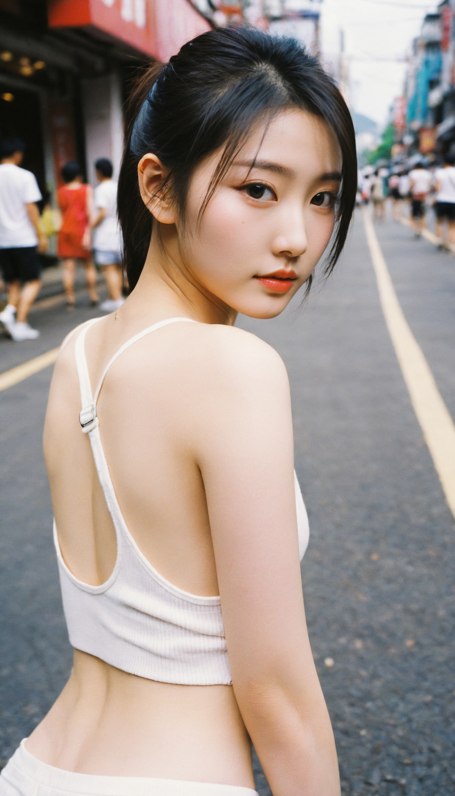 {"3": {"inputs": {"seed": 912436542784658, "steps": 64, "cfg": 7.74, "sampler_name": "dpmpp_2m", "scheduler": "karras", "denoise": 1.0, "model": ["27", 0], "positive": ["6", 0], "negative": ["7", 0], "latent_image": ["5", 0]}, "class_type": "KSampler"}, "4": {"inputs": {"ckpt_name": "helloworldxl.safetensors"}, "class_type": "CheckpointLoaderSimple"}, "5": {"inputs": {"width": 768, "height": 1344, "batch_size": 1}, "class_type": "EmptyLatentImage"}, "6": {"inputs": {"text": "23 year old girl, (taiwanese:1.10), (seductive facial expression:1.06), (eyelashes:0.96), (sexy lips:1.01), (pale skin:1.09), (seductive pose:1.00), (slim:1.01), (detailed face:1.07), (beautiful eyes:1.01), (temptress:1.05), (blush:1.10), (idol:1.00), (double eyelids:1.11), (cute:1.01), (perky ass:0.96), (exposed ass:1.05), (looking back:1.14), (sexy ass:1.07), (thigh gap:1.07), (white tanktop:0.99), busy street, (RAW:1.09), (candid cinema:1.04), (detailed skin:1.03), (skin fuzz:1.06), (textured skin:1.06), (natural looking skin:1.07), (film:1.01), (portra:1.09), (soft lighting:1.04)", "clip": ["27", 1]}, "class_type": "CLIPTextEncode"}, "7": {"inputs": {"text": "(bad hands:1.10), (low resolution:1.05), (twisted:1.05), (distorted:1.06), (open mouth:1.05), (worst quality:1.14), (watermark:1.05)", "clip": ["27", 1]}, "class_type": "CLIPTextEncode"}, "8": {"inputs": {"samples": ["3", 0], "vae": ["4", 2]}, "class_type": "VAEDecode"}, "25": {"inputs": {"lora_name": "nudify_xl.safetensors", "strength_model": 0.17, "strength_clip": 0.06, "model": ["4", 0], "clip": ["4", 1]}, "class_type": "LoraLoader"}, "26": {"inputs": {"lora_name": "shirtlift_SDXL_v2.safetensors", "strength_model": 0.11, "strength_clip": 0.03, "model": ["25", 0], "clip": ["25", 1]}, "class_type": "LoraLoader"}, "27": {"inputs": {"lora_name": "PerfectEyesXL.safetensors", "strength_model": 0.18, "strength_clip": 0.16, "model": ["26", 0], "clip": ["26", 1]}, "class_type": "LoraLoader"}, "30": {"inputs": {"model_name": "4x_NMKD-Superscale-SP_178000_G.pth"}, "class_type": "UpscaleModelLoader"}, "31": {"inputs": {"upscale_model": ["30", 0], "image": ["8", 0]}, "class_type": "ImageUpscaleWithModel"}, "32": {"inputs": {"upscale_method": "lanczos", "scale_by": 0.5, "image": ["31", 0]}, "class_type": "ImageScaleBy"}, "33": {"inputs": {"pixels": ["32", 0], "vae": ["4", 2]}, "class_type": "VAEEncode"}, "34": {"inputs": {"seed": 912436542784658, "steps": 64, "cfg": 7.74, "sampler_name": "dpmpp_2m", "scheduler": "karras", "denoise": 0.3, "model": ["27", 0], "positive": ["6", 0], "negative": ["7", 0], "latent_image": ["33", 0]}, "class_type": "KSampler"}, "36": {"inputs": {"samples": ["34", 0], "vae": ["4", 2]}, "class_type": "VAEDecode"}, "39": {"inputs": {"filename_prefix": "comfyapi-1732078765903", "images": ["36", 0]}, "class_type": "SaveImage"}}