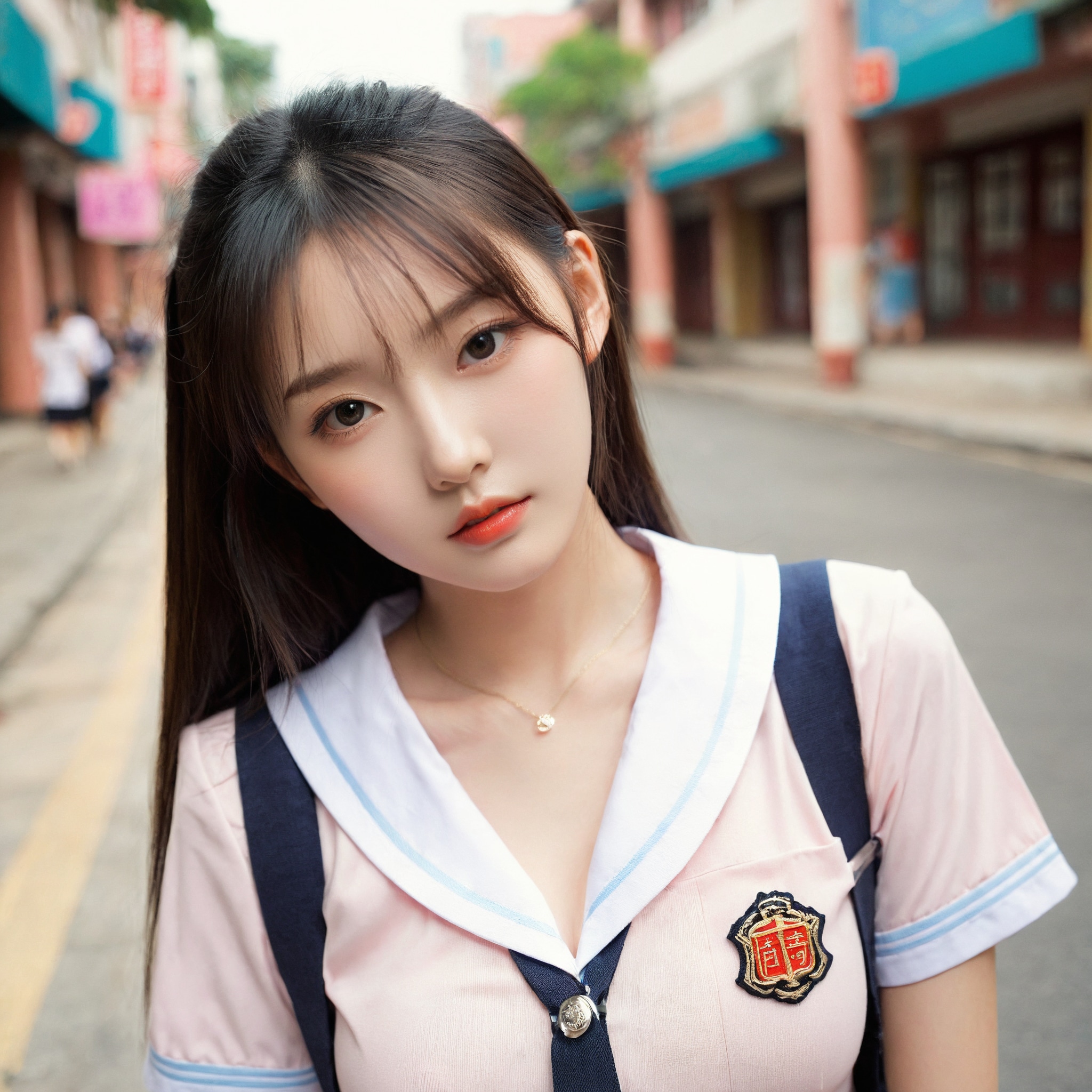 {"3": {"inputs": {"seed": 108987941977908, "steps": 64, "cfg": 6.68, "sampler_name": "dpmpp_2m", "scheduler": "karras", "denoise": 1.0, "model": ["27", 0], "positive": ["6", 0], "negative": ["7", 0], "latent_image": ["5", 0]}, "class_type": "KSampler"}, "4": {"inputs": {"ckpt_name": "leosamsHelloworldSDXL_helloworldSDXL32DPO.safetensors"}, "class_type": "CheckpointLoaderSimple"}, "5": {"inputs": {"width": 1024, "height": 1024, "batch_size": 1}, "class_type": "EmptyLatentImage"}, "6": {"inputs": {"text": "20 year old girl, (chinese:1.14), (detailed face:1.09), (seductive facial expression:1.05), (beautiful eyes:1.14), (idol:1.04), (eyelashes:1.09), (seductive pose:1.00), (slim:0.98), (pale skin:1.13), (blush:1.05), (cute:1.08), (sexy lips:1.09), (temptress:1.05), (in a seductive pose:1.04), (large perky breasts:1.05), (cleavage:1.12), (thigh gap:0.98), (school uniform:1.11), choker, busy street, (film:1.03), (natural looking skin:1.02), (soft lighting:1.06), (portra:1.06), (detailed skin:1.05), (skin fuzz:1.02), (candid cinema:1.05), (textured skin:1.09), (RAW:1.01)", "clip": ["27", 1]}, "class_type": "CLIPTextEncode"}, "7": {"inputs": {"text": "(watermark:1.14), (twisted:1.11), (distorted:1.07), (open mouth:1.07), (worst quality:1.05), (bad hands:1.10), (low resolution:1.13)", "clip": ["27", 1]}, "class_type": "CLIPTextEncode"}, "8": {"inputs": {"samples": ["3", 0], "vae": ["4", 2]}, "class_type": "VAEDecode"}, "25": {"inputs": {"lora_name": "nudify_xl.safetensors", "strength_model": 0.31, "strength_clip": 0.28, "model": ["4", 0], "clip": ["4", 1]}, "class_type": "LoraLoader"}, "26": {"inputs": {"lora_name": "shirtlift_SDXL_v2.safetensors", "strength_model": 0.14, "strength_clip": 0.13, "model": ["25", 0], "clip": ["25", 1]}, "class_type": "LoraLoader"}, "27": {"inputs": {"lora_name": "PerfectEyesXL.safetensors", "strength_model": 0.16, "strength_clip": 0.17, "model": ["26", 0], "clip": ["26", 1]}, "class_type": "LoraLoader"}, "30": {"inputs": {"model_name": "4x_NMKD-Superscale-SP_178000_G.pth"}, "class_type": "UpscaleModelLoader"}, "31": {"inputs": {"upscale_model": ["30", 0], "image": ["8", 0]}, "class_type": "ImageUpscaleWithModel"}, "32": {"inputs": {"upscale_method": "lanczos", "scale_by": 0.5, "image": ["31", 0]}, "class_type": "ImageScaleBy"}, "33": {"inputs": {"pixels": ["32", 0], "vae": ["4", 2]}, "class_type": "VAEEncode"}, "34": {"inputs": {"seed": 108987941977908, "steps": 64, "cfg": 6.68, "sampler_name": "dpmpp_2m", "scheduler": "karras", "denoise": 0.3, "model": ["27", 0], "positive": ["6", 0], "negative": ["7", 0], "latent_image": ["33", 0]}, "class_type": "KSampler"}, "36": {"inputs": {"samples": ["34", 0], "vae": ["4", 2]}, "class_type": "VAEDecode"}, "39": {"inputs": {"filename_prefix": "comfyapi-1707706493640", "images": ["36", 0]}, "class_type": "SaveImage"}}