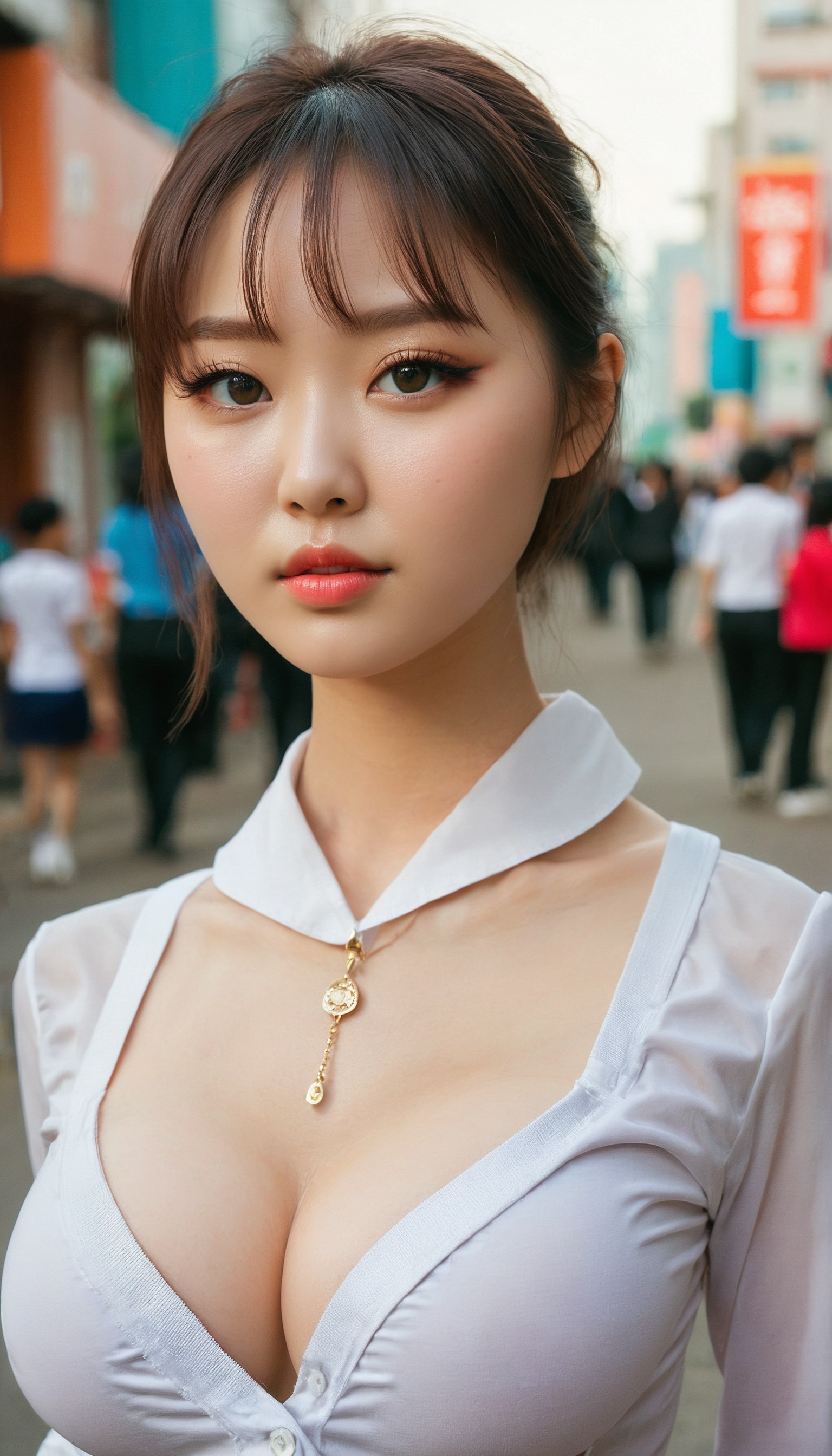 {"3": {"inputs": {"seed": 749415206230994, "steps": 64, "cfg": 7.49, "sampler_name": "dpmpp_2m", "scheduler": "karras", "denoise": 1.0, "model": ["27", 0], "positive": ["6", 0], "negative": ["7", 0], "latent_image": ["5", 0]}, "class_type": "KSampler"}, "4": {"inputs": {"ckpt_name": "juggernautxl.safetensors"}, "class_type": "CheckpointLoaderSimple"}, "5": {"inputs": {"width": 768, "height": 1344, "batch_size": 1}, "class_type": "EmptyLatentImage"}, "6": {"inputs": {"text": "24 year old girl, (russian:1.10), (ukrainian:1.02), (korean:1.12), (temptress:0.96), (double eyelids:1.08), (seductive pose:1.10), (sexy lips:1.05), (blush:1.08), (seductive facial expression:1.03), (cute:0.98), (detailed face:1.10), (eyelashes:1.07), (slim:1.07), (idol:1.03), (beautiful eyes:1.02), (in a seductive pose:0.99), (large perky breasts:1.08), (cleavage:1.02), (thigh gap:0.98), (school uniform:0.96), choker, busy street, (detailed skin:1.09), (natural looking skin:1.03), (RAW:1.06), (textured skin:1.05), (portra:1.08), (candid cinema:1.07), (skin fuzz:1.06), (film:1.01), (soft lighting:1.04)", "clip": ["27", 1]}, "class_type": "CLIPTextEncode"}, "7": {"inputs": {"text": "(bad hands:1.10), (open mouth:1.08), (watermark:1.09), (low resolution:1.05), (distorted:1.05), (worst quality:1.12)", "clip": ["27", 1]}, "class_type": "CLIPTextEncode"}, "8": {"inputs": {"samples": ["3", 0], "vae": ["4", 2]}, "class_type": "VAEDecode"}, "25": {"inputs": {"lora_name": "nudify_xl.safetensors", "strength_model": 0.25, "strength_clip": 0.27, "model": ["4", 0], "clip": ["4", 1]}, "class_type": "LoraLoader"}, "26": {"inputs": {"lora_name": "shirtlift_SDXL_v2.safetensors", "strength_model": 0.19, "strength_clip": 0.04, "model": ["25", 0], "clip": ["25", 1]}, "class_type": "LoraLoader"}, "27": {"inputs": {"lora_name": "PerfectEyesXL.safetensors", "strength_model": 0.17, "strength_clip": 0.05, "model": ["26", 0], "clip": ["26", 1]}, "class_type": "LoraLoader"}, "30": {"inputs": {"model_name": "4x_NMKD-Superscale-SP_178000_G.pth"}, "class_type": "UpscaleModelLoader"}, "31": {"inputs": {"upscale_model": ["30", 0], "image": ["8", 0]}, "class_type": "ImageUpscaleWithModel"}, "32": {"inputs": {"upscale_method": "lanczos", "scale_by": 0.5, "image": ["31", 0]}, "class_type": "ImageScaleBy"}, "33": {"inputs": {"pixels": ["32", 0], "vae": ["4", 2]}, "class_type": "VAEEncode"}, "34": {"inputs": {"seed": 749415206230994, "steps": 64, "cfg": 7.49, "sampler_name": "dpmpp_2m", "scheduler": "karras", "denoise": 0.3, "model": ["27", 0], "positive": ["6", 0], "negative": ["7", 0], "latent_image": ["33", 0]}, "class_type": "KSampler"}, "36": {"inputs": {"samples": ["34", 0], "vae": ["4", 2]}, "class_type": "VAEDecode"}, "39": {"inputs": {"filename_prefix": "comfyapi-1726510883162", "images": ["36", 0]}, "class_type": "SaveImage"}}