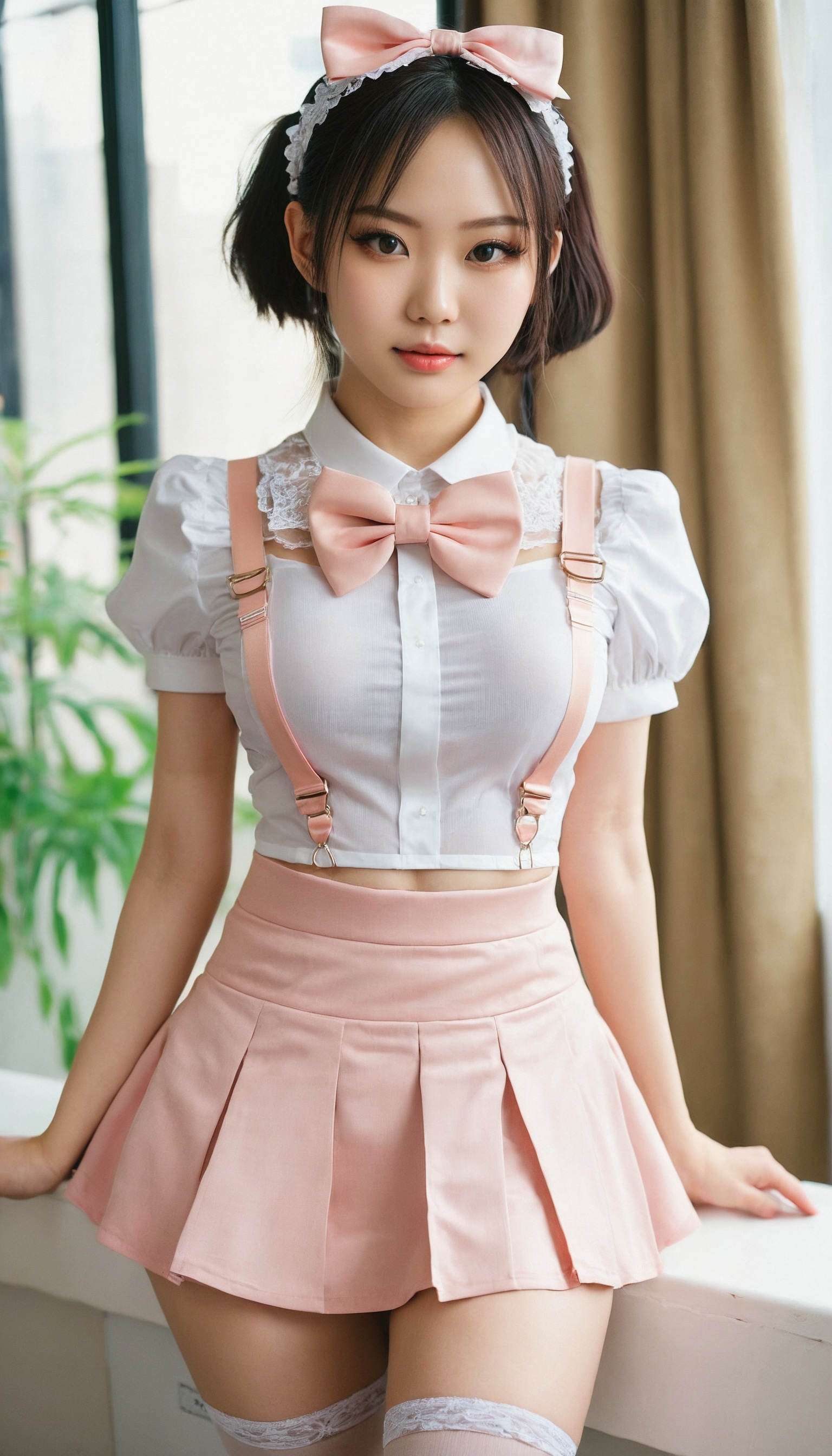 {"3": {"inputs": {"seed": 745103733203190, "steps": 32, "cfg": 7.44, "sampler_name": "dpmpp_2m", "scheduler": "karras", "denoise": 1.0, "model": ["27", 0], "positive": ["6", 0], "negative": ["7", 0], "latent_image": ["5", 0]}, "class_type": "KSampler"}, "4": {"inputs": {"ckpt_name": "juggernautxl.safetensors"}, "class_type": "CheckpointLoaderSimple"}, "5": {"inputs": {"width": 768, "height": 1344, "batch_size": 1}, "class_type": "EmptyLatentImage"}, "6": {"inputs": {"text": "22 year old girl, (taiwanese:0.96), (russian:1.13), (pale skin:1.11), (seductive facial expression:1.13), (sexy lips:1.03), (eyelashes:1.02), (beautiful eyes:0.96), (slim:1.09), (blush:1.10), (double eyelids:1.11), (seductive pose:1.13), (cute:1.06), (temptress:1.08), (detailed face:1.05), (idol:1.01), (perky ass:1.07), (exposed ass:0.99), (looking back:1.04), (sexy ass:1.14), (thigh gap:1.08), in a (skimpy maid costume:0.98) working at a maid cafe, choker, bowtie, headband, pleated skirt, (natural looking skin:1.06), (skin fuzz:1.04), (soft lighting:1.08), (portra:1.07), (textured skin:1.01), (film:1.00), (detailed skin:1.05), (candid cinema:1.04), (RAW:1.00)", "clip": ["27", 1]}, "class_type": "CLIPTextEncode"}, "7": {"inputs": {"text": "(worst quality:1.09), (bad hands:1.08), (twisted:1.13), (watermark:1.12), (low resolution:1.08), (open mouth:1.13), (distorted:1.12)", "clip": ["27", 1]}, "class_type": "CLIPTextEncode"}, "8": {"inputs": {"samples": ["3", 0], "vae": ["4", 2]}, "class_type": "VAEDecode"}, "25": {"inputs": {"lora_name": "nudify_xl.safetensors", "strength_model": 0.04, "strength_clip": 0.33, "model": ["4", 0], "clip": ["4", 1]}, "class_type": "LoraLoader"}, "26": {"inputs": {"lora_name": "shirtlift_SDXL_v2.safetensors", "strength_model": 0.07, "strength_clip": 0.13, "model": ["25", 0], "clip": ["25", 1]}, "class_type": "LoraLoader"}, "27": {"inputs": {"lora_name": "PerfectEyesXL.safetensors", "strength_model": 0.16, "strength_clip": 0.05, "model": ["26", 0], "clip": ["26", 1]}, "class_type": "LoraLoader"}, "30": {"inputs": {"model_name": "4x_NMKD-Superscale-SP_178000_G.pth"}, "class_type": "UpscaleModelLoader"}, "31": {"inputs": {"upscale_model": ["30", 0], "image": ["8", 0]}, "class_type": "ImageUpscaleWithModel"}, "32": {"inputs": {"upscale_method": "lanczos", "scale_by": 0.5, "image": ["31", 0]}, "class_type": "ImageScaleBy"}, "33": {"inputs": {"pixels": ["32", 0], "vae": ["4", 2]}, "class_type": "VAEEncode"}, "34": {"inputs": {"seed": 745103733203190, "steps": 32, "cfg": 7.44, "sampler_name": "dpmpp_2m", "scheduler": "karras", "denoise": 0.3, "model": ["27", 0], "positive": ["6", 0], "negative": ["7", 0], "latent_image": ["33", 0]}, "class_type": "KSampler"}, "36": {"inputs": {"samples": ["34", 0], "vae": ["4", 2]}, "class_type": "VAEDecode"}, "39": {"inputs": {"filename_prefix": "comfyapi-1716300025713", "images": ["36", 0]}, "class_type": "SaveImage"}}