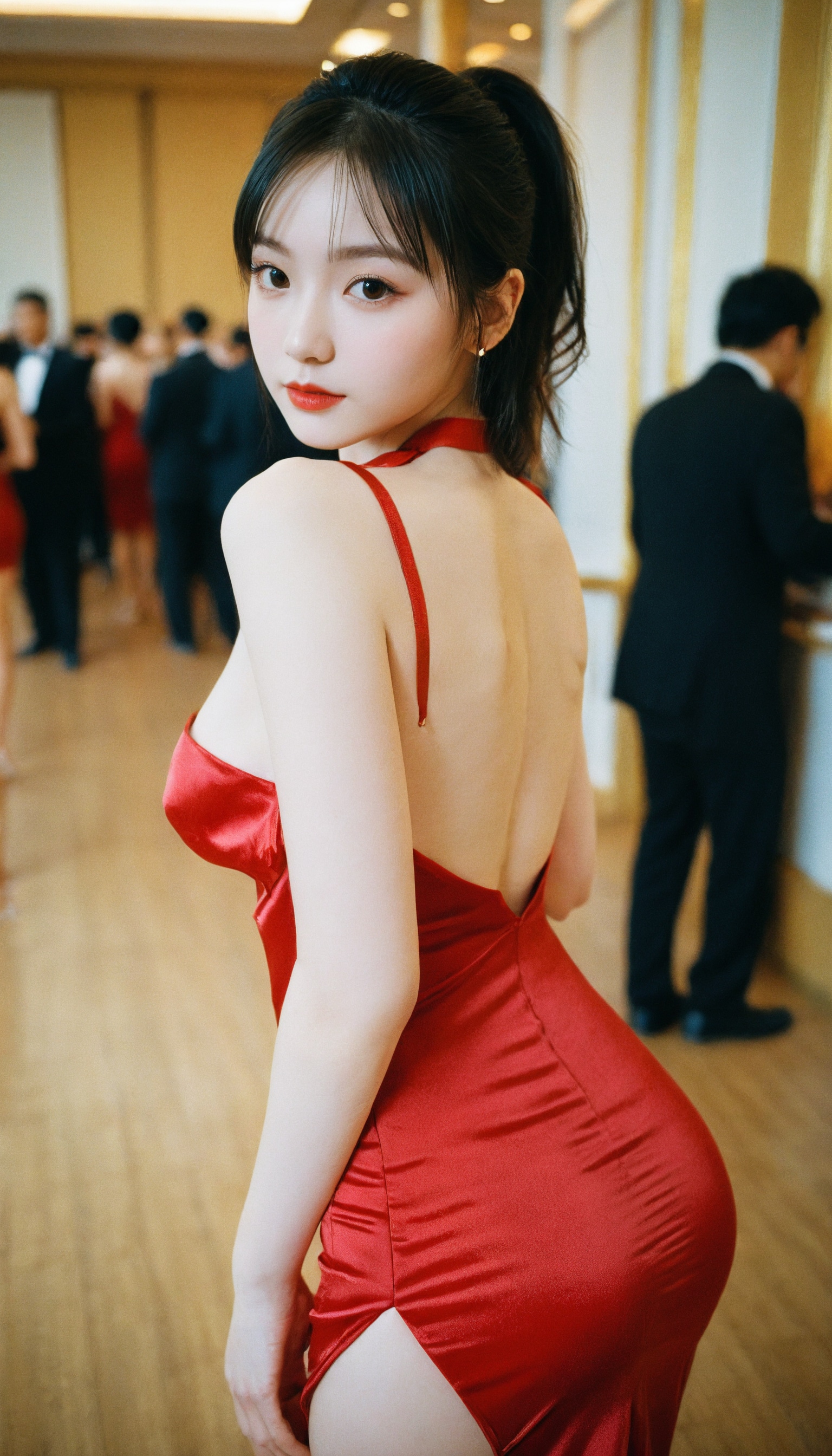 {"3": {"inputs": {"seed": 992155381072071, "steps": 32, "cfg": 6.99, "sampler_name": "dpmpp_2m", "scheduler": "karras", "denoise": 1.0, "model": ["27", 0], "positive": ["6", 0], "negative": ["7", 0], "latent_image": ["5", 0]}, "class_type": "KSampler"}, "4": {"inputs": {"ckpt_name": "helloworldxl.safetensors"}, "class_type": "CheckpointLoaderSimple"}, "5": {"inputs": {"width": 768, "height": 1344, "batch_size": 1}, "class_type": "EmptyLatentImage"}, "6": {"inputs": {"text": "18 year old girl, (detailed face:0.98), (slim:1.14), (eyelashes:0.96), (sexy lips:1.07), (beautiful eyes:0.97), (temptress:1.12), (seductive pose:0.97), (pale skin:1.06), (double eyelids:1.14), (cute:1.04), (seductive facial expression:1.09), (blush:1.01), (idol:0.95), (perky ass:1.00), (exposed ass:1.01), (looking back:1.07), (sexy ass:0.98), (thigh gap:1.06), (wearing a low-cut red dress:1.07) at a ballroom, (candid cinema:1.08), (portra:1.08), (detailed skin:1.04), (RAW:1.03), (soft lighting:1.02), (skin fuzz:1.08), (natural looking skin:1.04), (film:1.07), (textured skin:1.03)", "clip": ["27", 1]}, "class_type": "CLIPTextEncode"}, "7": {"inputs": {"text": "(distorted:1.10), (watermark:1.08), (twisted:1.10), (worst quality:1.07), (open mouth:1.07), (bad hands:1.12), (low resolution:1.14)", "clip": ["27", 1]}, "class_type": "CLIPTextEncode"}, "8": {"inputs": {"samples": ["3", 0], "vae": ["4", 2]}, "class_type": "VAEDecode"}, "25": {"inputs": {"lora_name": "nudify_xl.safetensors", "strength_model": 0.35, "strength_clip": 0.04, "model": ["4", 0], "clip": ["4", 1]}, "class_type": "LoraLoader"}, "26": {"inputs": {"lora_name": "shirtlift_SDXL_v2.safetensors", "strength_model": 0.18, "strength_clip": 0.01, "model": ["25", 0], "clip": ["25", 1]}, "class_type": "LoraLoader"}, "27": {"inputs": {"lora_name": "PerfectEyesXL.safetensors", "strength_model": 0.0, "strength_clip": 0.05, "model": ["26", 0], "clip": ["26", 1]}, "class_type": "LoraLoader"}, "30": {"inputs": {"model_name": "4x_NMKD-Superscale-SP_178000_G.pth"}, "class_type": "UpscaleModelLoader"}, "31": {"inputs": {"upscale_model": ["30", 0], "image": ["8", 0]}, "class_type": "ImageUpscaleWithModel"}, "32": {"inputs": {"upscale_method": "lanczos", "scale_by": 0.5, "image": ["31", 0]}, "class_type": "ImageScaleBy"}, "33": {"inputs": {"pixels": ["32", 0], "vae": ["4", 2]}, "class_type": "VAEEncode"}, "34": {"inputs": {"seed": 992155381072071, "steps": 32, "cfg": 6.99, "sampler_name": "dpmpp_2m", "scheduler": "karras", "denoise": 0.3, "model": ["27", 0], "positive": ["6", 0], "negative": ["7", 0], "latent_image": ["33", 0]}, "class_type": "KSampler"}, "36": {"inputs": {"samples": ["34", 0], "vae": ["4", 2]}, "class_type": "VAEDecode"}, "39": {"inputs": {"filename_prefix": "comfyapi-1713812343583", "images": ["36", 0]}, "class_type": "SaveImage"}}
