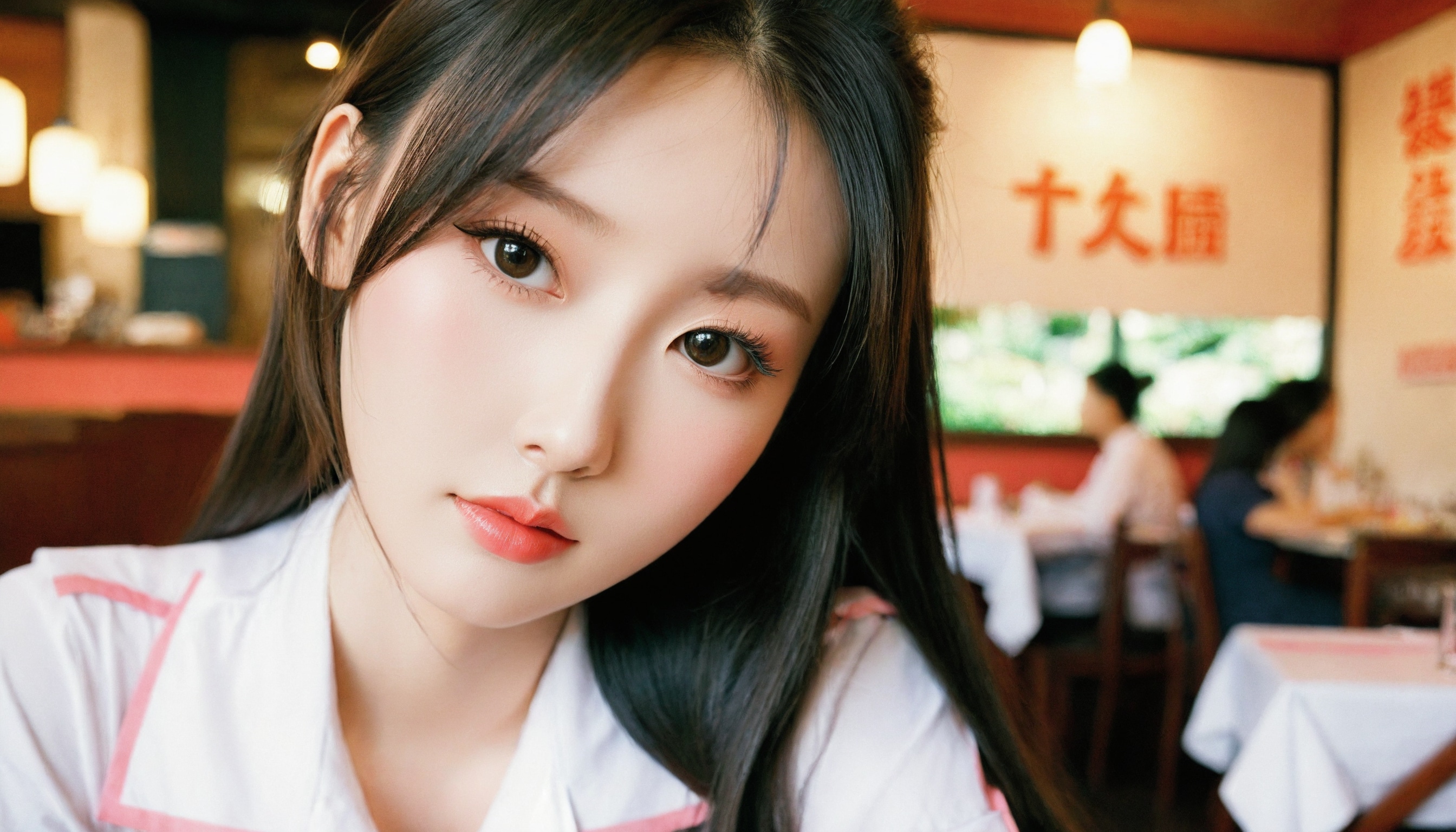 {"3": {"inputs": {"seed": 691311739246940, "steps": 32, "cfg": 6.63, "sampler_name": "dpmpp_2m", "scheduler": "karras", "denoise": 1.0, "model": ["27", 0], "positive": ["6", 0], "negative": ["7", 0], "latent_image": ["5", 0]}, "class_type": "KSampler"}, "4": {"inputs": {"ckpt_name": "leosamsHelloworldSDXL_helloworldSDXL32DPO.safetensors"}, "class_type": "CheckpointLoaderSimple"}, "5": {"inputs": {"width": 1344, "height": 768, "batch_size": 1}, "class_type": "EmptyLatentImage"}, "6": {"inputs": {"text": "19 year old girl, (chinese:0.98), (temptress:1.13), (idol:1.01), (sexy lips:0.98), (seductive pose:1.07), (beautiful eyes:1.01), (slim:0.99), (detailed face:1.11), (eyelashes:1.09), (cute:1.10), (pale skin:1.12), (seductive facial expression:1.04), (blush:1.12), (in a seductive pose:1.10), (large perky breasts:0.95), (cleavage:0.98), (thigh gap:1.01), (a waitress in uniform:0.95) working at a restaurant, (portra:1.00), (candid cinema:1.01), (skin fuzz:1.04), (film:1.08), (natural looking skin:1.00), (soft lighting:1.04), (detailed skin:1.02), (RAW:1.01), (textured skin:1.08)", "clip": ["27", 1]}, "class_type": "CLIPTextEncode"}, "7": {"inputs": {"text": "(watermark:1.12), (low resolution:1.14), (worst quality:1.14), (open mouth:1.05), (twisted:1.13), (bad hands:1.12), (distorted:1.05)", "clip": ["27", 1]}, "class_type": "CLIPTextEncode"}, "8": {"inputs": {"samples": ["3", 0], "vae": ["4", 2]}, "class_type": "VAEDecode"}, "25": {"inputs": {"lora_name": "nudify_xl.safetensors", "strength_model": 0.26, "strength_clip": 0.27, "model": ["4", 0], "clip": ["4", 1]}, "class_type": "LoraLoader"}, "26": {"inputs": {"lora_name": "shirtlift_SDXL_v2.safetensors", "strength_model": 0.03, "strength_clip": 0.0, "model": ["25", 0], "clip": ["25", 1]}, "class_type": "LoraLoader"}, "27": {"inputs": {"lora_name": "PerfectEyesXL.safetensors", "strength_model": 0.18, "strength_clip": 0.1, "model": ["26", 0], "clip": ["26", 1]}, "class_type": "LoraLoader"}, "30": {"inputs": {"model_name": "4x_NMKD-Superscale-SP_178000_G.pth"}, "class_type": "UpscaleModelLoader"}, "31": {"inputs": {"upscale_model": ["30", 0], "image": ["8", 0]}, "class_type": "ImageUpscaleWithModel"}, "32": {"inputs": {"upscale_method": "lanczos", "scale_by": 0.5, "image": ["31", 0]}, "class_type": "ImageScaleBy"}, "33": {"inputs": {"pixels": ["32", 0], "vae": ["4", 2]}, "class_type": "VAEEncode"}, "34": {"inputs": {"seed": 691311739246940, "steps": 32, "cfg": 6.63, "sampler_name": "dpmpp_2m", "scheduler": "karras", "denoise": 0.3, "model": ["27", 0], "positive": ["6", 0], "negative": ["7", 0], "latent_image": ["33", 0]}, "class_type": "KSampler"}, "36": {"inputs": {"samples": ["34", 0], "vae": ["4", 2]}, "class_type": "VAEDecode"}, "39": {"inputs": {"filename_prefix": "comfyapi-1708235296800", "images": ["36", 0]}, "class_type": "SaveImage"}}