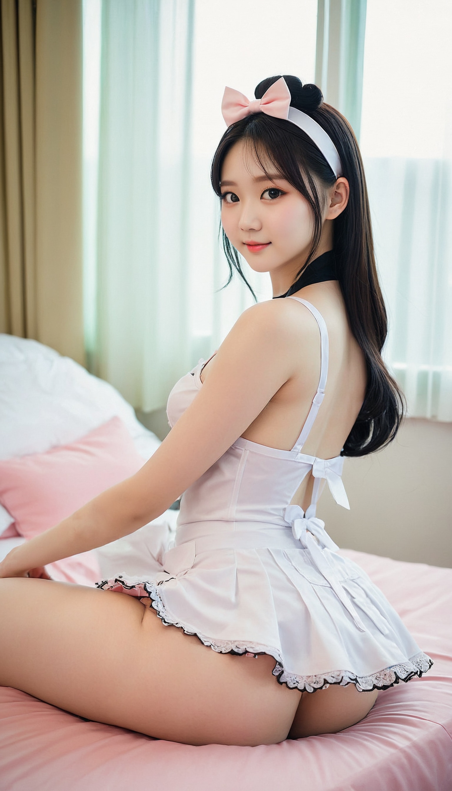 {"3": {"inputs": {"seed": 346566961997772, "steps": 32, "cfg": 7.27, "sampler_name": "dpmpp_2m", "scheduler": "karras", "denoise": 1.0, "model": ["27", 0], "positive": ["6", 0], "negative": ["7", 0], "latent_image": ["5", 0]}, "class_type": "KSampler"}, "4": {"inputs": {"ckpt_name": "juggernautXL_v8Rundiffusion.safetensors"}, "class_type": "CheckpointLoaderSimple"}, "5": {"inputs": {"width": 768, "height": 1344, "batch_size": 1}, "class_type": "EmptyLatentImage"}, "6": {"inputs": {"text": "22 year old girl, (korean:1.07), (seductive pose:0.98), (temptress:1.04), (beautiful eyes:1.06), (pale skin:0.96), (double eyelids:1.13), (cute:1.07), (eyelashes:1.10), (seductive facial expression:1.02), (detailed face:0.95), (blush:1.13), (sexy lips:0.95), (idol:1.14), (on all fours:1.00), (spreading ass cheeks:1.13), (from behind:1.08), (backboob:0.98), in a (skimpy maid costume:1.14) working at a maid cafe, choker, bowtie, headband, pleated skirt, (textured skin:1.03), (detailed skin:1.07), (skin fuzz:1.01), (natural looking skin:1.01), (candid cinema:1.03), (film:1.01), (portra:1.09), (RAW:1.05), (soft lighting:1.05)", "clip": ["27", 1]}, "class_type": "CLIPTextEncode"}, "7": {"inputs": {"text": "(distorted:1.05), (open mouth:1.07), (low resolution:1.09), (worst quality:1.11), (bad hands:1.05), (watermark:1.11), (twisted:1.11)", "clip": ["27", 1]}, "class_type": "CLIPTextEncode"}, "8": {"inputs": {"samples": ["3", 0], "vae": ["4", 2]}, "class_type": "VAEDecode"}, "25": {"inputs": {"lora_name": "nudify_xl.safetensors", "strength_model": 0.05, "strength_clip": 0.07, "model": ["4", 0], "clip": ["4", 1]}, "class_type": "LoraLoader"}, "26": {"inputs": {"lora_name": "shirtlift_SDXL_v2.safetensors", "strength_model": 0.12, "strength_clip": 0.14, "model": ["25", 0], "clip": ["25", 1]}, "class_type": "LoraLoader"}, "27": {"inputs": {"lora_name": "PerfectEyesXL.safetensors", "strength_model": 0.06, "strength_clip": 0.19, "model": ["26", 0], "clip": ["26", 1]}, "class_type": "LoraLoader"}, "30": {"inputs": {"model_name": "4x_NMKD-Superscale-SP_178000_G.pth"}, "class_type": "UpscaleModelLoader"}, "31": {"inputs": {"upscale_model": ["30", 0], "image": ["8", 0]}, "class_type": "ImageUpscaleWithModel"}, "32": {"inputs": {"upscale_method": "lanczos", "scale_by": 0.5, "image": ["31", 0]}, "class_type": "ImageScaleBy"}, "33": {"inputs": {"pixels": ["32", 0], "vae": ["4", 2]}, "class_type": "VAEEncode"}, "34": {"inputs": {"seed": 346566961997772, "steps": 32, "cfg": 7.27, "sampler_name": "dpmpp_2m", "scheduler": "karras", "denoise": 0.3, "model": ["27", 0], "positive": ["6", 0], "negative": ["7", 0], "latent_image": ["33", 0]}, "class_type": "KSampler"}, "36": {"inputs": {"samples": ["34", 0], "vae": ["4", 2]}, "class_type": "VAEDecode"}, "39": {"inputs": {"filename_prefix": "comfyapi-1707934173801", "images": ["36", 0]}, "class_type": "SaveImage"}}