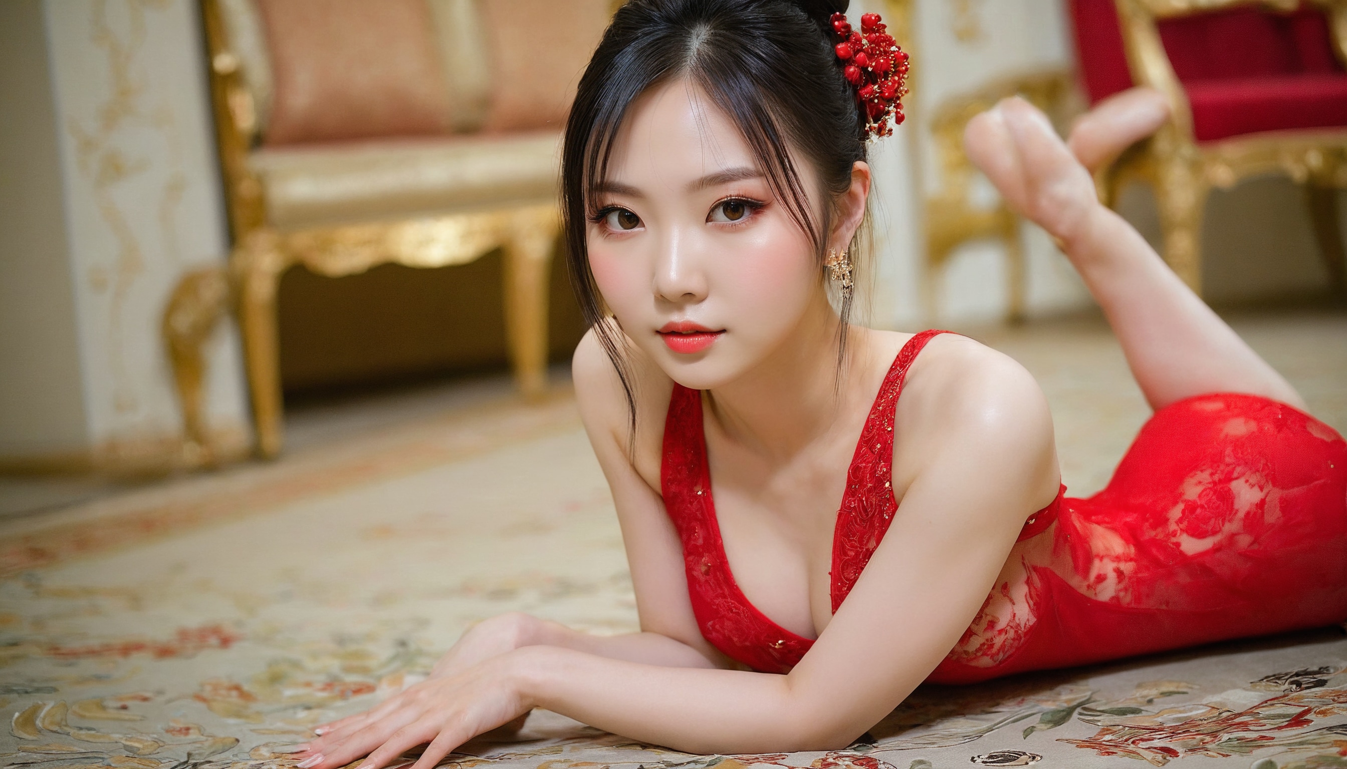{"3": {"inputs": {"seed": 943895428461524, "steps": 64, "cfg": 5.67, "sampler_name": "dpmpp_2m", "scheduler": "karras", "denoise": 1.0, "model": ["27", 0], "positive": ["6", 0], "negative": ["7", 0], "latent_image": ["5", 0]}, "class_type": "KSampler"}, "4": {"inputs": {"ckpt_name": "juggernautxl.safetensors"}, "class_type": "CheckpointLoaderSimple"}, "5": {"inputs": {"width": 1344, "height": 768, "batch_size": 1}, "class_type": "EmptyLatentImage"}, "6": {"inputs": {"text": "22 year old girl, (ukrainian:1.12), (chinese:1.09), (japanese:0.97), (cute:0.95), (seductive pose:1.07), (blush:0.97), (sexy lips:1.07), (double eyelids:1.11), (slim:0.96), (pale skin:0.97), (beautiful eyes:1.07), (eyelashes:1.03), (idol:1.06), (seductive facial expression:1.01), (detailed face:1.07), (on all fours:0.98), (spreading ass cheeks:1.01), (from behind:1.11), (backboob:0.96), (wearing a low-cut red dress:0.97) at a ballroom, (textured skin:1.06), (natural looking skin:1.05), (candid cinema:1.05), (skin fuzz:1.04), (soft lighting:1.06), (RAW:1.09), (portra:1.05), (film:1.00), (detailed skin:1.06)", "clip": ["27", 1]}, "class_type": "CLIPTextEncode"}, "7": {"inputs": {"text": "(twisted:1.13), (watermark:1.14), (open mouth:1.12), (distorted:1.13), (worst quality:1.05), (bad hands:1.13), (low resolution:1.10)", "clip": ["27", 1]}, "class_type": "CLIPTextEncode"}, "8": {"inputs": {"samples": ["3", 0], "vae": ["4", 2]}, "class_type": "VAEDecode"}, "25": {"inputs": {"lora_name": "nudify_xl.safetensors", "strength_model": 0.18, "strength_clip": 0.17, "model": ["4", 0], "clip": ["4", 1]}, "class_type": "LoraLoader"}, "26": {"inputs": {"lora_name": "shirtlift_SDXL_v2.safetensors", "strength_model": 0.18, "strength_clip": 0.02, "model": ["25", 0], "clip": ["25", 1]}, "class_type": "LoraLoader"}, "27": {"inputs": {"lora_name": "PerfectEyesXL.safetensors", "strength_model": 0.18, "strength_clip": 0.14, "model": ["26", 0], "clip": ["26", 1]}, "class_type": "LoraLoader"}, "30": {"inputs": {"model_name": "4x_NMKD-Superscale-SP_178000_G.pth"}, "class_type": "UpscaleModelLoader"}, "31": {"inputs": {"upscale_model": ["30", 0], "image": ["8", 0]}, "class_type": "ImageUpscaleWithModel"}, "32": {"inputs": {"upscale_method": "lanczos", "scale_by": 0.5, "image": ["31", 0]}, "class_type": "ImageScaleBy"}, "33": {"inputs": {"pixels": ["32", 0], "vae": ["4", 2]}, "class_type": "VAEEncode"}, "34": {"inputs": {"seed": 943895428461524, "steps": 64, "cfg": 5.67, "sampler_name": "dpmpp_2m", "scheduler": "karras", "denoise": 0.3, "model": ["27", 0], "positive": ["6", 0], "negative": ["7", 0], "latent_image": ["33", 0]}, "class_type": "KSampler"}, "36": {"inputs": {"samples": ["34", 0], "vae": ["4", 2]}, "class_type": "VAEDecode"}, "39": {"inputs": {"filename_prefix": "comfyapi-1713637484899", "images": ["36", 0]}, "class_type": "SaveImage"}}
