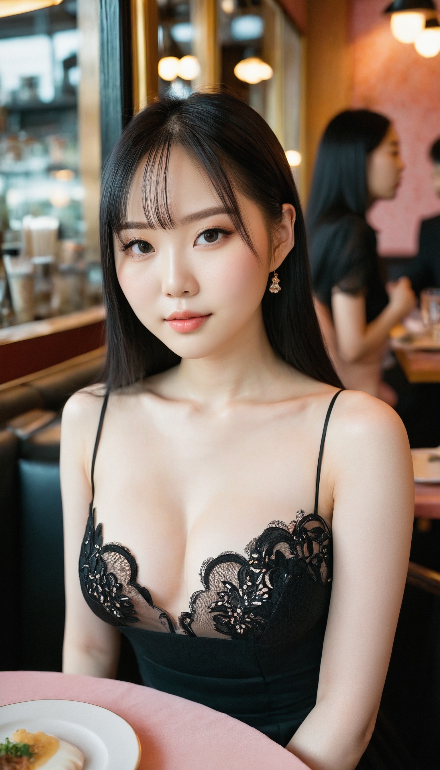 {"3": {"inputs": {"seed": 841055883513005, "steps": 64, "cfg": 7.35, "sampler_name": "dpmpp_2m", "scheduler": "karras", "denoise": 1.0, "model": ["27", 0], "positive": ["6", 0], "negative": ["7", 0], "latent_image": ["5", 0]}, "class_type": "KSampler"}, "4": {"inputs": {"ckpt_name": "juggernautxl.safetensors"}, "class_type": "CheckpointLoaderSimple"}, "5": {"inputs": {"width": 768, "height": 1344, "batch_size": 1}, "class_type": "EmptyLatentImage"}, "6": {"inputs": {"text": "26 year old girl, (japanese:0.97), (korean:0.95), (russian:1.04), (pale skin:1.02), (sexy lips:0.96), (idol:1.04), (detailed face:1.06), (seductive facial expression:1.10), (eyelashes:1.00), (slim:0.97), (temptress:1.00), (double eyelids:1.05), (cute:1.10), (blush:1.13), (seductive pose:1.04), (beautiful eyes:0.97), (on all fours:1.02), (spreading ass cheeks:0.95), (from behind:0.97), (backboob:0.97), (wearing a little black dress:1.09) at a fine dining restaurant, (soft lighting:1.05), (textured skin:1.02), (skin fuzz:1.02), (RAW:1.00), (natural looking skin:1.08), (detailed skin:1.01), (candid cinema:1.08), (film:1.05), (portra:1.08)", "clip": ["27", 1]}, "class_type": "CLIPTextEncode"}, "7": {"inputs": {"text": "(twisted:1.10), (worst quality:1.12), (open mouth:1.11), (bad hands:1.09), (low resolution:1.05), (watermark:1.10), (distorted:1.08)", "clip": ["27", 1]}, "class_type": "CLIPTextEncode"}, "8": {"inputs": {"samples": ["3", 0], "vae": ["4", 2]}, "class_type": "VAEDecode"}, "25": {"inputs": {"lora_name": "nudify_xl.safetensors", "strength_model": 0.14, "strength_clip": 0.27, "model": ["4", 0], "clip": ["4", 1]}, "class_type": "LoraLoader"}, "26": {"inputs": {"lora_name": "shirtlift_SDXL_v2.safetensors", "strength_model": 0.12, "strength_clip": 0.01, "model": ["25", 0], "clip": ["25", 1]}, "class_type": "LoraLoader"}, "27": {"inputs": {"lora_name": "PerfectEyesXL.safetensors", "strength_model": 0.0, "strength_clip": 0.03, "model": ["26", 0], "clip": ["26", 1]}, "class_type": "LoraLoader"}, "30": {"inputs": {"model_name": "4x_NMKD-Superscale-SP_178000_G.pth"}, "class_type": "UpscaleModelLoader"}, "31": {"inputs": {"upscale_model": ["30", 0], "image": ["8", 0]}, "class_type": "ImageUpscaleWithModel"}, "32": {"inputs": {"upscale_method": "lanczos", "scale_by": 0.5, "image": ["31", 0]}, "class_type": "ImageScaleBy"}, "33": {"inputs": {"pixels": ["32", 0], "vae": ["4", 2]}, "class_type": "VAEEncode"}, "34": {"inputs": {"seed": 841055883513005, "steps": 64, "cfg": 7.35, "sampler_name": "dpmpp_2m", "scheduler": "karras", "denoise": 0.3, "model": ["27", 0], "positive": ["6", 0], "negative": ["7", 0], "latent_image": ["33", 0]}, "class_type": "KSampler"}, "36": {"inputs": {"samples": ["34", 0], "vae": ["4", 2]}, "class_type": "VAEDecode"}, "39": {"inputs": {"filename_prefix": "comfyapi-1731158826307", "images": ["36", 0]}, "class_type": "SaveImage"}}