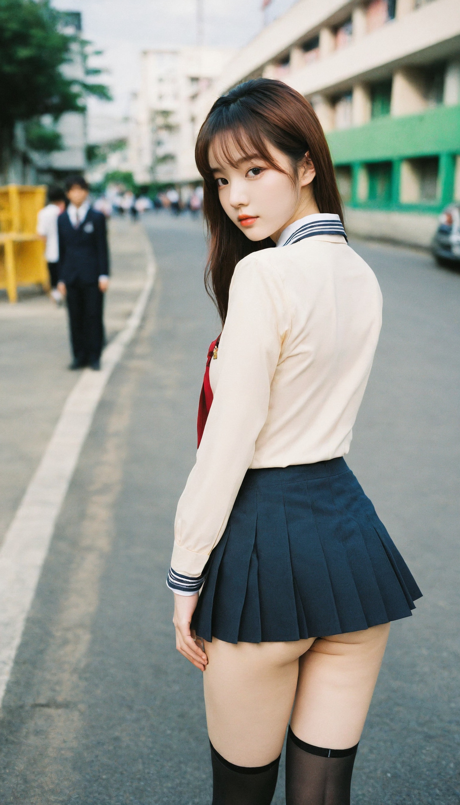 {"3": {"inputs": {"seed": 134369706507458, "steps": 32, "cfg": 5.18, "sampler_name": "dpmpp_2m", "scheduler": "karras", "denoise": 1.0, "model": ["27", 0], "positive": ["6", 0], "negative": ["7", 0], "latent_image": ["5", 0]}, "class_type": "KSampler"}, "4": {"inputs": {"ckpt_name": "helloworldxl.safetensors"}, "class_type": "CheckpointLoaderSimple"}, "5": {"inputs": {"width": 768, "height": 1344, "batch_size": 1}, "class_type": "EmptyLatentImage"}, "6": {"inputs": {"text": "23 year old girl, (korean:0.96), (eyelashes:1.06), (slim:1.01), (cute:1.13), (temptress:0.95), (sexy lips:1.10), (beautiful eyes:0.99), (seductive pose:1.03), (pale skin:1.03), (idol:1.00), (detailed face:1.09), (blush:1.04), (seductive facial expression:1.04), (double eyelids:1.05), (perky ass:1.06), (exposed ass:1.03), (looking back:1.10), (sexy ass:1.14), (thigh gap:0.95), (school uniform:1.10), choker, busy street, (portra:1.06), (soft lighting:1.02), (natural looking skin:1.08), (RAW:1.01), (detailed skin:1.07), (skin fuzz:1.08), (film:1.05), (candid cinema:1.07), (textured skin:1.01)", "clip": ["27", 1]}, "class_type": "CLIPTextEncode"}, "7": {"inputs": {"text": "(bad hands:1.07), (worst quality:1.05), (distorted:1.08), (open mouth:1.12), (twisted:1.07), (low resolution:1.13), (watermark:1.08)", "clip": ["27", 1]}, "class_type": "CLIPTextEncode"}, "8": {"inputs": {"samples": ["3", 0], "vae": ["4", 2]}, "class_type": "VAEDecode"}, "25": {"inputs": {"lora_name": "nudify_xl.safetensors", "strength_model": 0.18, "strength_clip": 0.39, "model": ["4", 0], "clip": ["4", 1]}, "class_type": "LoraLoader"}, "26": {"inputs": {"lora_name": "shirtlift_SDXL_v2.safetensors", "strength_model": 0.02, "strength_clip": 0.02, "model": ["25", 0], "clip": ["25", 1]}, "class_type": "LoraLoader"}, "27": {"inputs": {"lora_name": "PerfectEyesXL.safetensors", "strength_model": 0.16, "strength_clip": 0.17, "model": ["26", 0], "clip": ["26", 1]}, "class_type": "LoraLoader"}, "30": {"inputs": {"model_name": "4x_NMKD-Superscale-SP_178000_G.pth"}, "class_type": "UpscaleModelLoader"}, "31": {"inputs": {"upscale_model": ["30", 0], "image": ["8", 0]}, "class_type": "ImageUpscaleWithModel"}, "32": {"inputs": {"upscale_method": "lanczos", "scale_by": 0.5, "image": ["31", 0]}, "class_type": "ImageScaleBy"}, "33": {"inputs": {"pixels": ["32", 0], "vae": ["4", 2]}, "class_type": "VAEEncode"}, "34": {"inputs": {"seed": 134369706507458, "steps": 32, "cfg": 5.18, "sampler_name": "dpmpp_2m", "scheduler": "karras", "denoise": 0.3, "model": ["27", 0], "positive": ["6", 0], "negative": ["7", 0], "latent_image": ["33", 0]}, "class_type": "KSampler"}, "36": {"inputs": {"samples": ["34", 0], "vae": ["4", 2]}, "class_type": "VAEDecode"}, "39": {"inputs": {"filename_prefix": "comfyapi-1735573916607", "images": ["36", 0]}, "class_type": "SaveImage"}}
